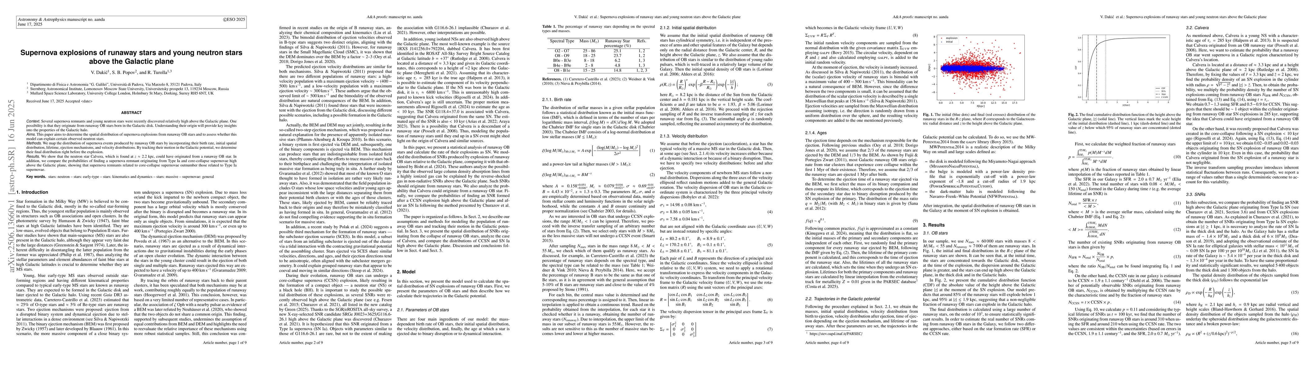 Several supernova remnants and young neutron stars were recently discovered relatively high above the Galactic plane. One possibility is that they originate from runaway OB stars born in the Galactic disk. Understanding their origin will provide key insights into the properties of the Galactic halo. This paper aims to determine the spatial distribution of supernova explosions from runaway OB stars and to assess whether this model can explain certain observed neutron stars. We map the distribution of supernova events produced by runaway OB stars by incorporating their birth rate, initial spatial distribution, lifetime, ejection mechanisms, and velocity distributions. By tracking their motion in the Galactic potential, we determine their final distribution right before the explosion. We show that the neutron star Calvera, which is found at z around 2.2 kpc, could have originated from a runaway OB star. In addition, we compare the probabilities of finding a supernova remnant originating from Type Ia and core-collapse supernovae high above the Galactic plane, showing that supernova remnants related to core-collapse supernovae outnumber those related to Type Ia supernovae.