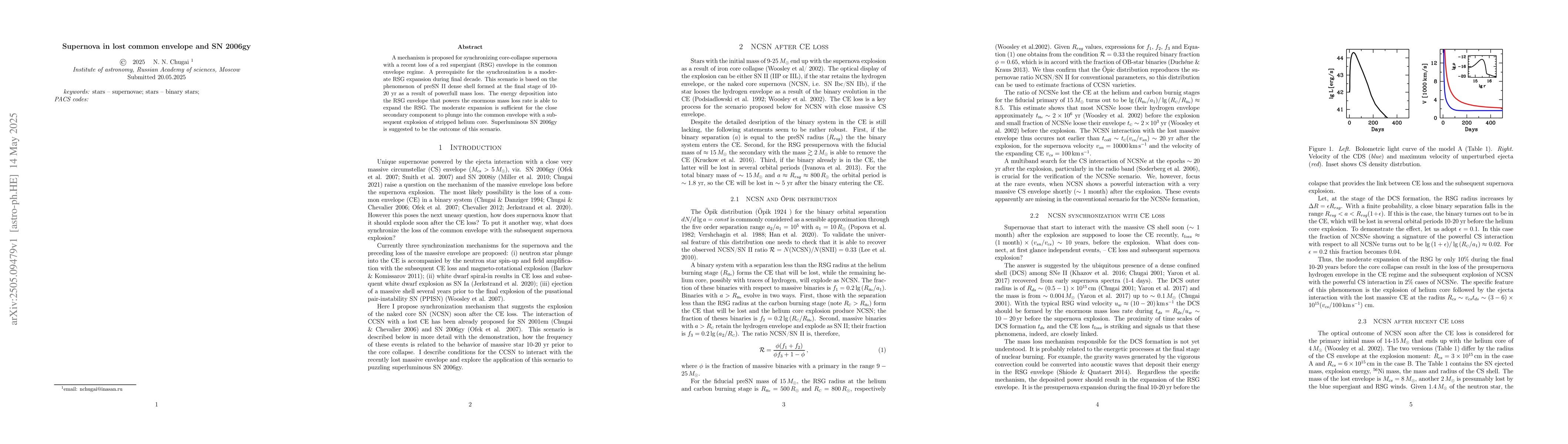 The paper proposes a mechanism for synchronizing core-collapse supernova with recent loss of a red supergiant (RSG) envelope in the common envelope regime, based on the formation of a preSN II dense shell during the final 10-20 years.