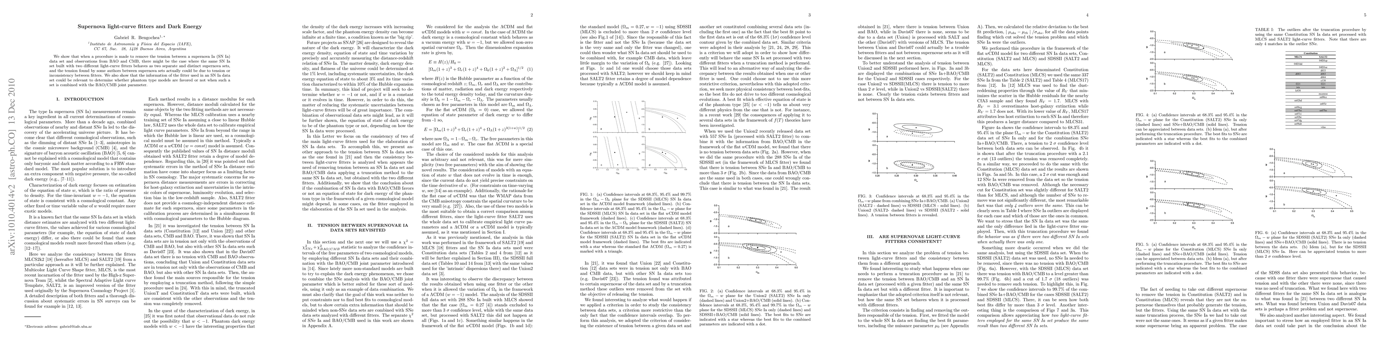 A study suggests that differences in supernova light-curve fitters may cause tension between supernova data sets, which could be resolved by using consistent fitters. The choice of fitter affects the outcome of phantom type models when combined with BAO/CMB observations.