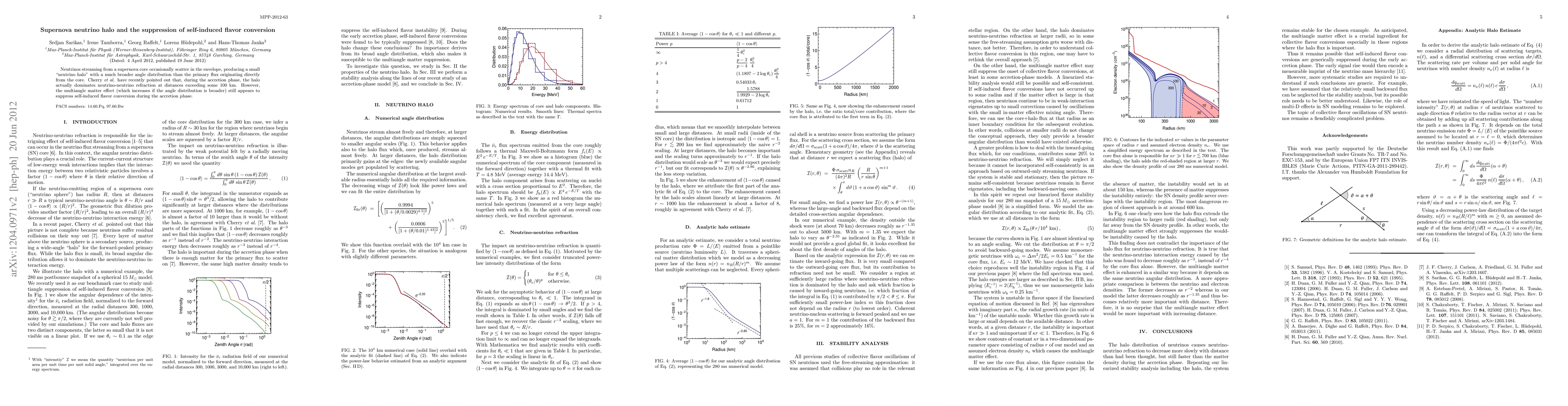 This paper investigates the impact of a "neutrino halo" formed by neutrinos scattering in the supernova envelope, which has a broader angular distribution than the primary flux from the core. Despite the halo dominating neutrino-neutrino interactions at distances over 100 km, the multiangle matter effect suppresses self-induced flavor conversion during the accretion phase.