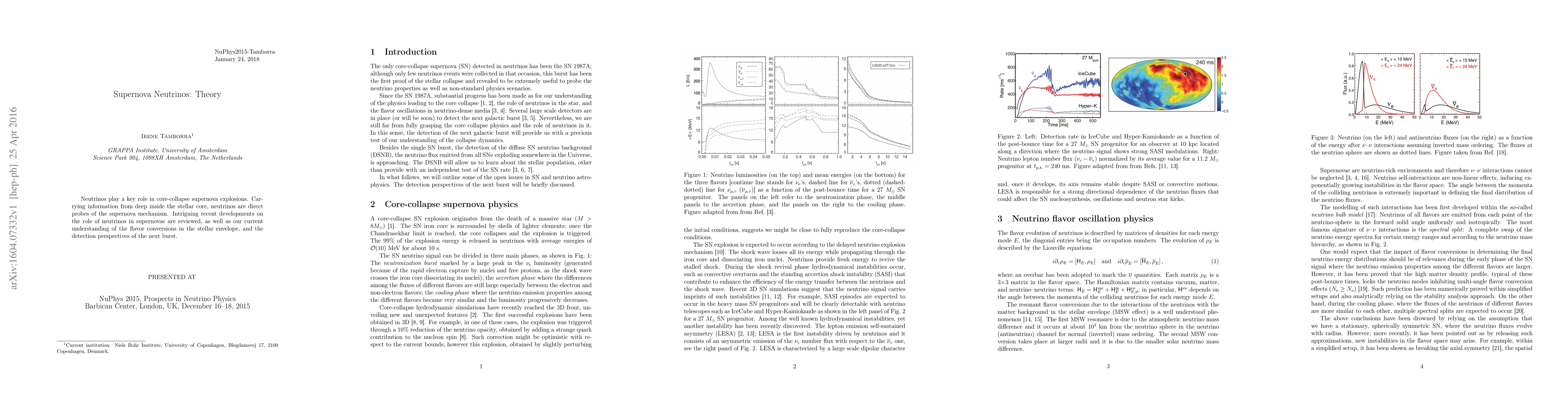 This paper reviews recent advancements in the understanding of neutrinos' role in core-collapse supernovae, focusing on their influence on the explosion mechanism and the mechanisms behind flavor conversions in the stellar envelope, alongside prospects for detecting future neutrino bursts.