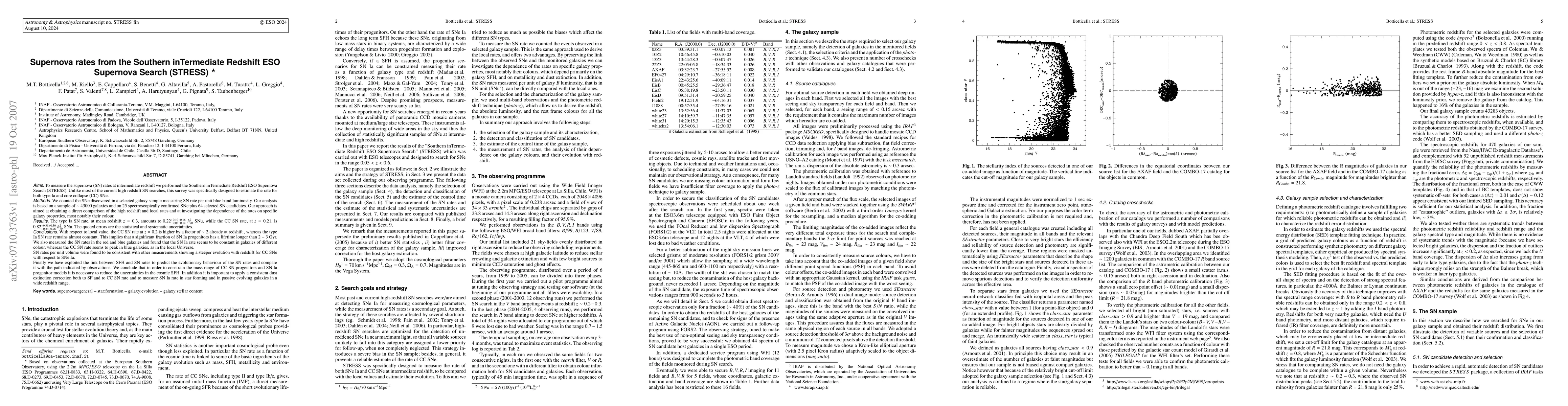 To measure the supernova (SN) rates at intermediate redshift we performed the Southern inTermediate Redshift ESO Supernova Search (STRESS). Unlike most of the current high redshift SN searches, this survey was specifically designed to estimate the rate for both type Ia and core collapse (CC) SNe. We counted the SNe discovered in a selected galaxy sample measuring SN rate per unit blue band luminosity. Our analysis is based on a sample of ~43000 galaxies and on 25 spectroscopically confirmed SNe plus 64 selected SN candidates. Our approach is aimed at obtaining a direct comparison of the high redshift and local rates and at investigating the dependence of the rates on specific galaxy properties, most notably their colour. The type Ia SN rate, at mean redshift z=0.3, amounts to 0.22^{+0.10+0.16}_{-0.08 -0.14} h_{70}^2 SNu, while the CC SN rate, at z=0.21, is 0.82^{+0.31 +0.30}_{-0.24 -0.26} h_{70}^2 SNu. The quoted errors are the statistical and systematic uncertainties. With respect to local value, the CC SN rate at z=0.2 is higher by a factor of ~2 already at redshift, whereas the type Ia SN rate remains almost constant. This implies that a significant fraction of SN Ia progenitors has a lifetime longer than 2-3 Gyr. We also measured the SN rates in the red and blue galaxies and found that the SN Ia rate seems to be constant in galaxies of different colour, whereas the CC SN rate seems to peak in blue galaxies, as in the local Universe. SN rates per unit volume were found to be consistent with other measurements showing a steeper evolution with redshift for CC SNe with respect to SNe Ia. Finally we have exploited the link between star formation (SF) and SN rates to predict the evolutionary behaviour of the SN rates and compare it with the path indicated by observations.