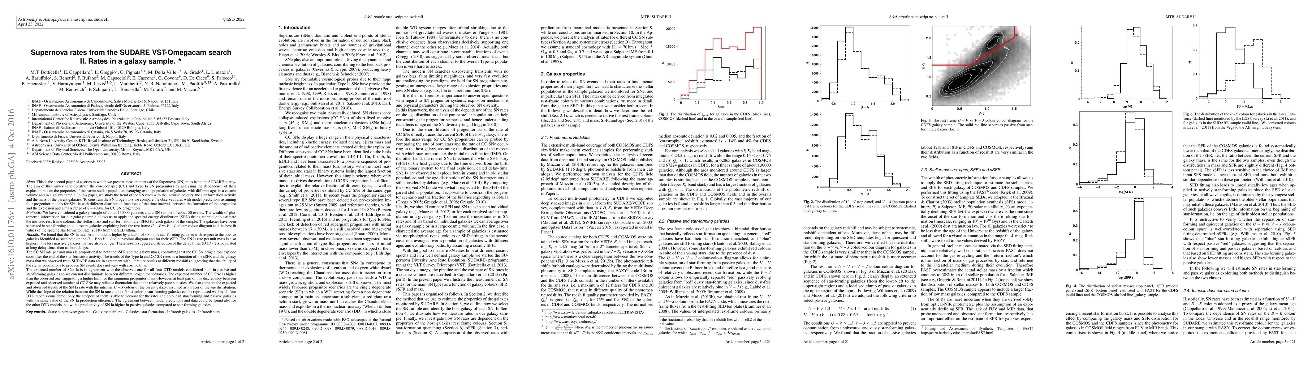 This is the second paper of a series in which we present measurements of the Supernova (SN) rates from the SUDARE survey. In this paper, we study the trend of the SN rates with the intrinsic colours, the star formation activity and the mass of the parent galaxies. We have considered a sample of about 130000 galaxies and a SN sample of about 50 events. We found that the SN Ia rate per unit mass is higher by a factor of six in the star-forming galaxies with respect to the passive galaxies. The SN Ia rate per unit mass is also higher in the less massive galaxies that are also younger. These results suggest a distribution of the delay times (DTD) less populated at long delay times than at short delays. The CC SN rate per unit mass is proportional to both the sSFR and the galaxy mass. The trends of the Type Ia and CC SN rates as a function of the sSFR and the galaxy mass that we observed from SUDARE data are in agreement with literature results at different redshifts. The expected number of SNe Ia is in agreement with the observed one for all four DTD models considered both in passive and star-forming galaxies so we can not discriminate between different progenitor scenarios. The expected number of CC SNe is higher than the observed one, suggesting a higher limit for the minimum progenitor mass. We also compare the expected and observed trends of the SN Ia rate with the intrinsic U - J colour of the parent galaxy, assumed as a tracer of the age distribution. While the slope of the relation between the SN Ia rate and the U - J color in star-forming galaxies can be reproduced well by all four DTD models considered, only the steepest of them is able to account for the rates and colour in star-forming and passive galaxies with the same value of the SN Ia production efficiency.