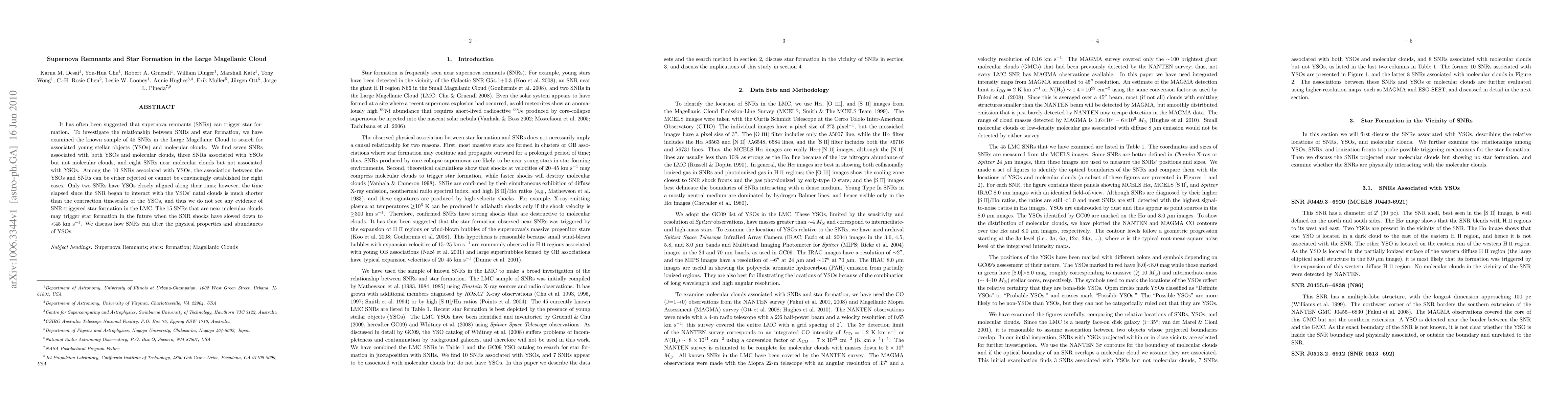It has often been suggested that supernova remnants (SNRs) can trigger star formation. To investigate the relationship between SNRs and star formation, we have examined the known sample of 45 SNRs in the Large Magellanic Cloud to search for associated young stellar objects (YSOs) and molecular clouds. We find seven SNRs associated with both YSOs and molecular clouds, three SNRs associated with YSOs but not molecular clouds, and eight SNRs near molecular clouds but not associated with YSOs. Among the 10 SNRs associated with YSOs, the association between the YSOs and SNRs can be either rejected or cannot be convincingly established for eight cases. Only two SNRs have YSOs closely aligned along their rims; however, the time elapsed since the SNR began to interact with the YSOs' natal clouds is much shorter than the contraction timescales of the YSOs, and thus we do not see any evidence of SNR-triggered star formation in the LMC. The 15 SNRs that are near molecular clouds may trigger star formation in the future when the SNR shocks have slowed down to <45 km/s. We discuss how SNRs can alter the physical properties and abundances of YSOs.