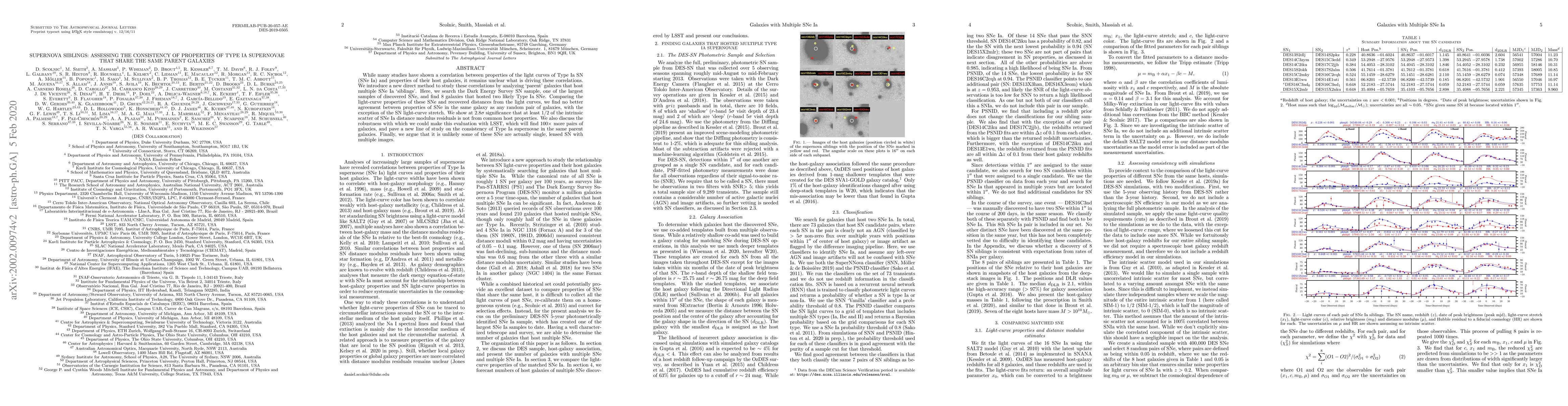 While many studies have shown a correlation between properties of the light curves of Type Ia SN (SNe Ia) and properties of their host galaxies, it remains unclear what is driving these correlations. We introduce a new direct method to study these correlations by analyzing `parent' galaxies that host multiple SNe Ia 'siblings'. Here, we search the Dark Energy Survey SN sample, one of the largest samples of discovered SNe, and find 8 galaxies that hosted two likely Type Ia SNe. Comparing the light-curve properties of these SNe and recovered distances from the light curves, we find no better agreement between properties of SNe in the same galaxy as any random pair of galaxies, with the exception of the SN light-curve stretch. We show at $2.8\sigma$ significance that at least 1/2 of the intrinsic scatter of SNe Ia distance modulus residuals is not from common host properties. We also discuss the robustness with which we could make this evaluation with LSST, which will find $100\times$ more pairs of galaxies, and pave a new line of study on the consistency of Type Ia supernovae in the same parent galaxies. Finally, we argue that it is unlikely some of these SNe are actually single, lensed SN with multiple images.