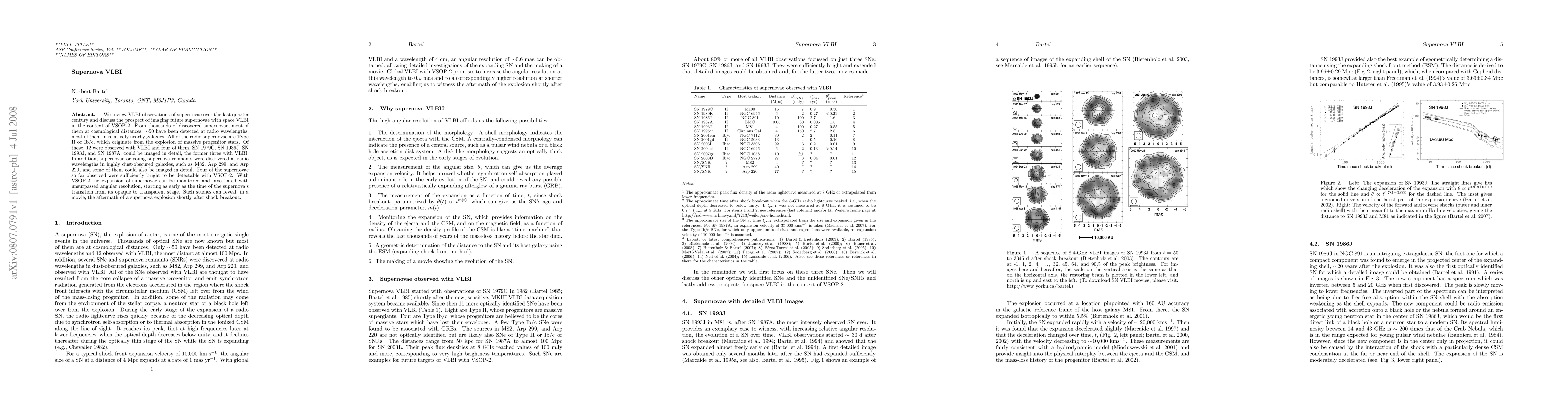 We review VLBI observations of supernovae over the last quarter century and discuss the prospect of imaging future supernovae with space VLBI in the context of VSOP-2. From thousands of discovered supernovae, most of them at cosmological distances, ~50 have been detected at radio wavelengths, most of them in relatively nearby galaxies. All of the radio supernovae are Type II or Ib/c, which originate from the explosion of massive progenitor stars. Of these, 12 were observed with VLBI and four of them, SN 1979C, SN 1986J, SN 1993J, and SN 1987A, could be imaged in detail, the former three with VLBI. In addition, supernovae or young supernova remnants were discovered at radio wavelengths in highly dust-obscured galaxies, such as M82, Arp 299, and Arp 220, and some of them could also be imaged in detail. Four of the supernovae so far observed were sufficiently bright to be detectable with VSOP-2. With VSOP-2 the expansion of supernovae can be monitored and investiated with unsurpassed angular resolution, starting as early as the time of the supernova's transition from its opaque to transparent stage. Such studies can reveal, in a movie, the aftermath of a supernova explosion shortly after shock breakout.