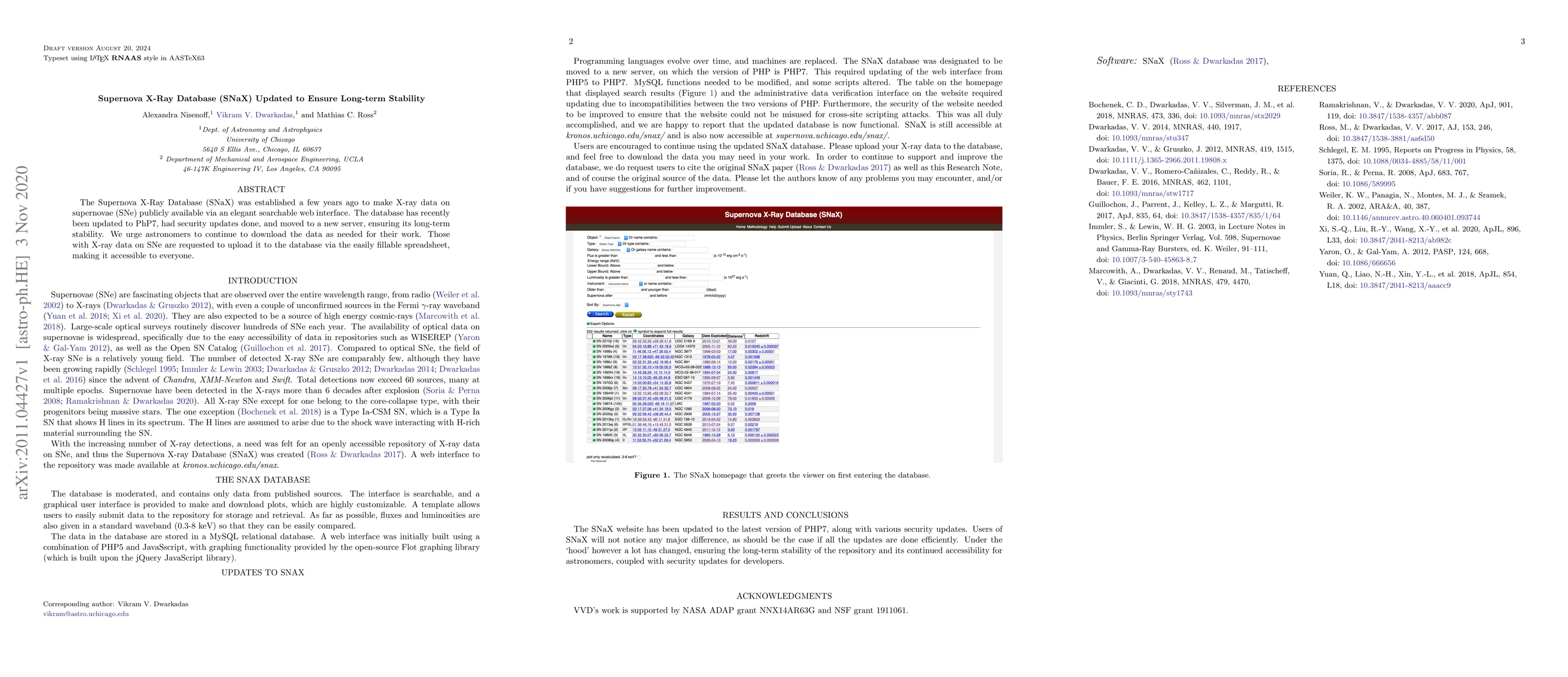 The Supernova X-Ray Database (SNaX) has been updated to PHP7, with security enhancements and a server migration, ensuring long-term stability. Researchers are encouraged to utilize the updated database for their work and contribute X-ray supernova data via a user-friendly spreadsheet.