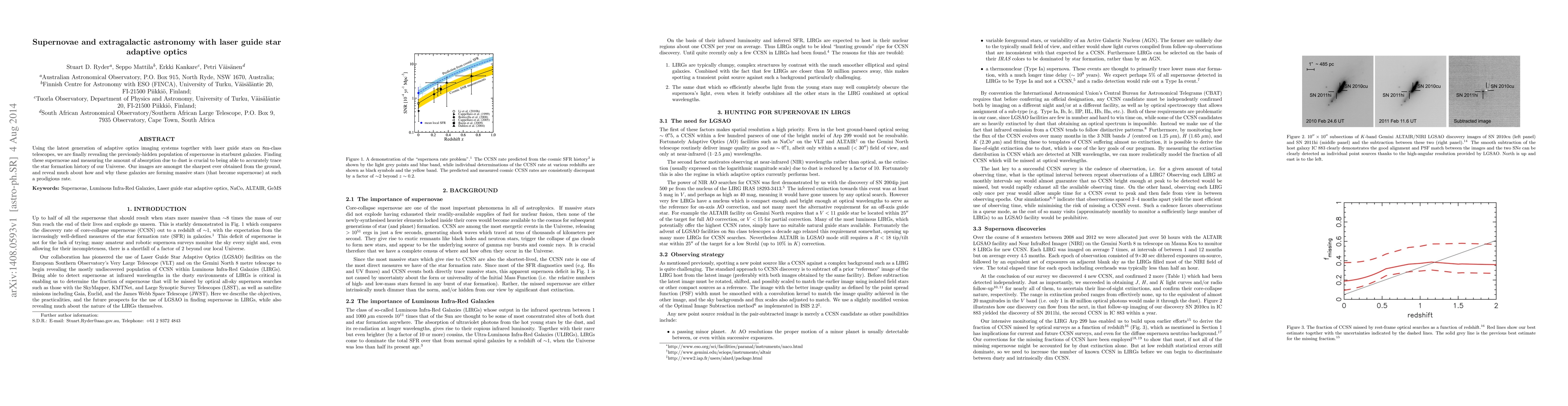 This paper discusses the use of adaptive optics imaging systems with laser guide stars on large telescopes to uncover supernovae in starburst galaxies, providing crucial data on dust absorption and star formation history. The high-resolution images obtained reveal insights into the mechanisms driving massive star formation in these galaxies.