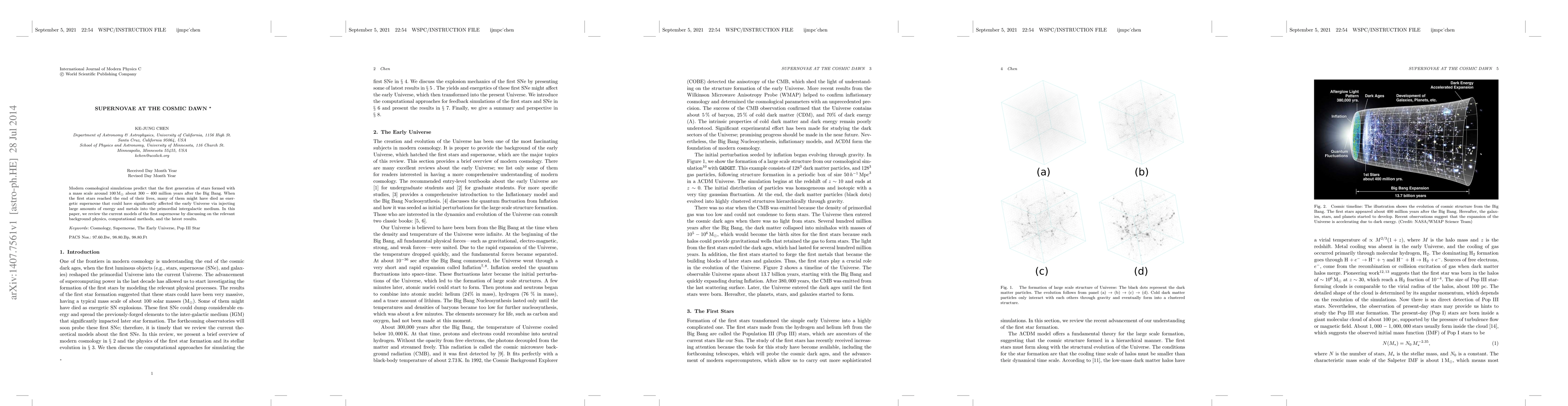 Modern cosmological simulations predict that the first generation of stars formed with a mass scale around 100 solar masses about 300-400 million years after the Big Bang. When the first stars reached the end of their lives, many of them might have died as energetic supernovae that could have significantly affected the early Universe via injecting large amounts of energy and metals into the primordial intergalactic medium. In this paper, we review the current models of the first supernovae by discussing on the relevant background physics, computational methods, and the latest results.
