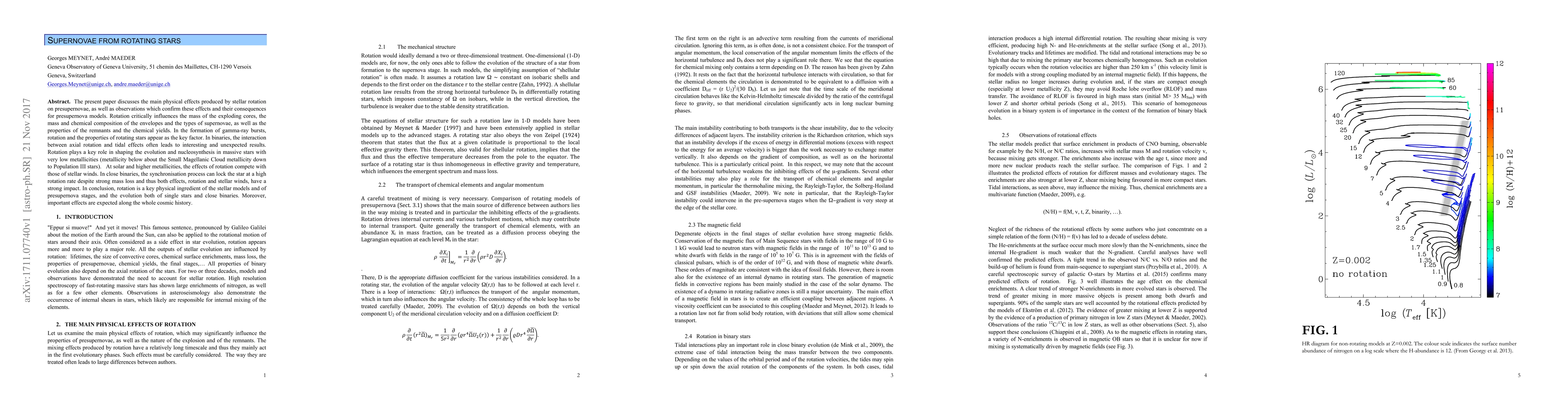 The present paper discusses the main physical effects produced by stellar rotation on presupernovae, as well as observations which confirm these effects and their consequences for presupernova models. Rotation critically influences the mass of the exploding cores, the mass and chemical composition of the envelopes and the types of supernovae, as well as the properties of the remnants and the chemical yields. In the formation of gamma-ray bursts, rotation and the properties of rotating stars appear as the key factor. In binaries, the interaction between axial rotation and tidal effects often leads to interesting and unexpected results. Rotation plays a key role in shaping the evolution and nucleosynthesis in massive stars with very low metallicities (metallicity below about the Small Magellanic Cloud metallicity down to Population III stars). At solar and higher metallicities, the effects of rotation compete with those of stellar winds. In close binaries, the synchronisation process can lock the star at a high rotation rate despite strong mass loss and thus both effects, rotation and stellar winds, have a strong impact. In conclusion, rotation is a key physical ingredient of the stellar models and of presupernova stages, and the evolution both of single stars and close binaries. Moreover, important effects are expected along the whole cosmic history.