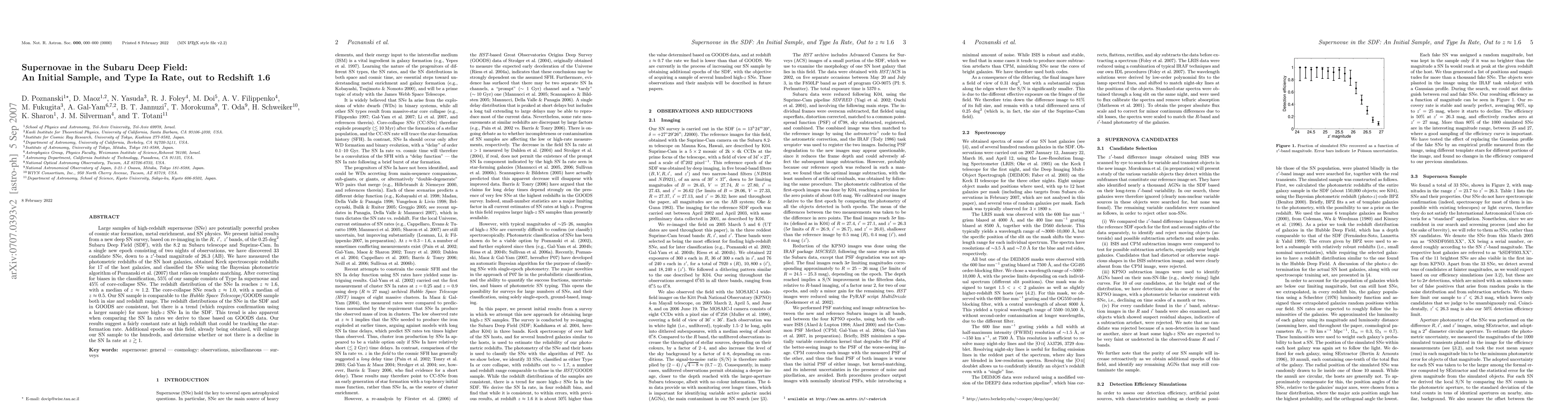 This study presents initial findings from a deep supernova survey in the Subaru Deep Field, discovering 33 candidate supernovae, predominantly Type Ia (55%) and core-collapse (45%). The survey suggests a constant high-redshift Type Ia supernova rate, potentially tracking the star-formation rate, with additional observations planned to confirm these trends.