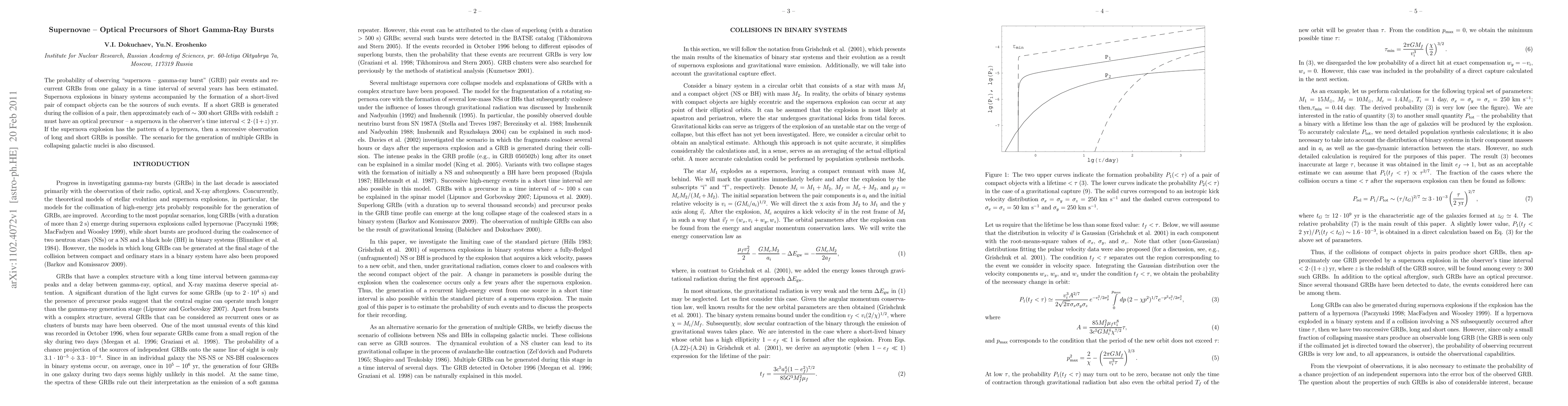 The probability of observing "supernova - gamma-ray burst" (GRB) pair events and recurrent GRBs from one galaxy in a time interval of several years has been estimated. Supernova explosions in binary systems accompanied by the formation of a short-lived pair of compact objects can be the sources of such events. If a short GRB is generated during the collision of a pair, then approximately each of ~300 short GRBs with redshift z must have an optical precursor - a supernova in the observer's time interval <2(1+z)yr. If the supernova explosion has the pattern of a hypernova, then a successive observation of long and short GRBs is possible. The scenario for the generation of multiple GRBs in collapsing galactic nuclei is also discussed.