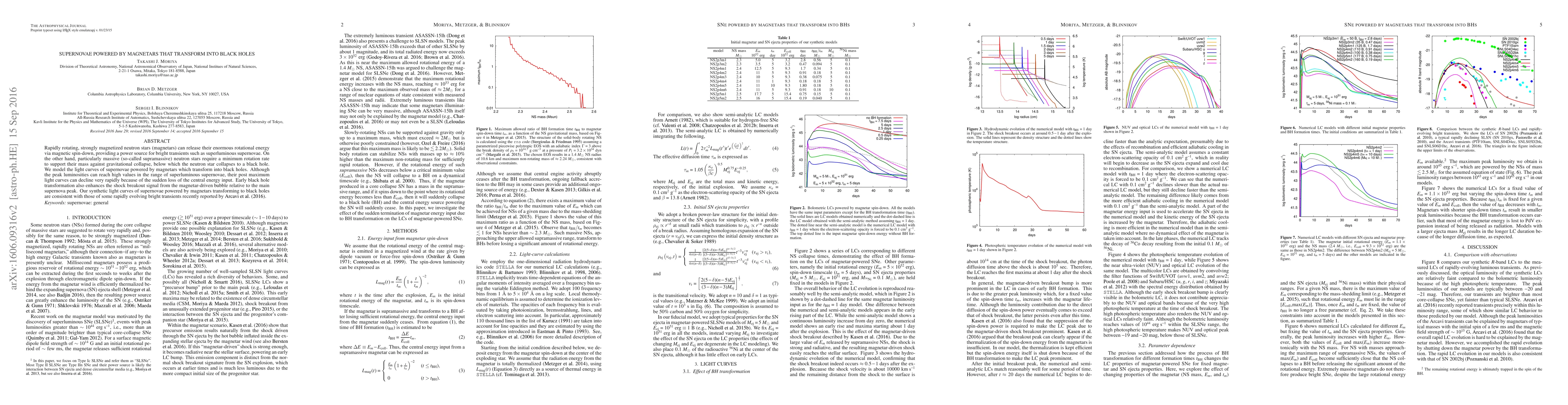 This paper models the light curves of supernovae powered by magnetars that transform into black holes, showing that their peak luminosities can be superluminous but decline rapidly due to the loss of central energy input. The study finds that early black hole transformation enhances shock breakout signals.