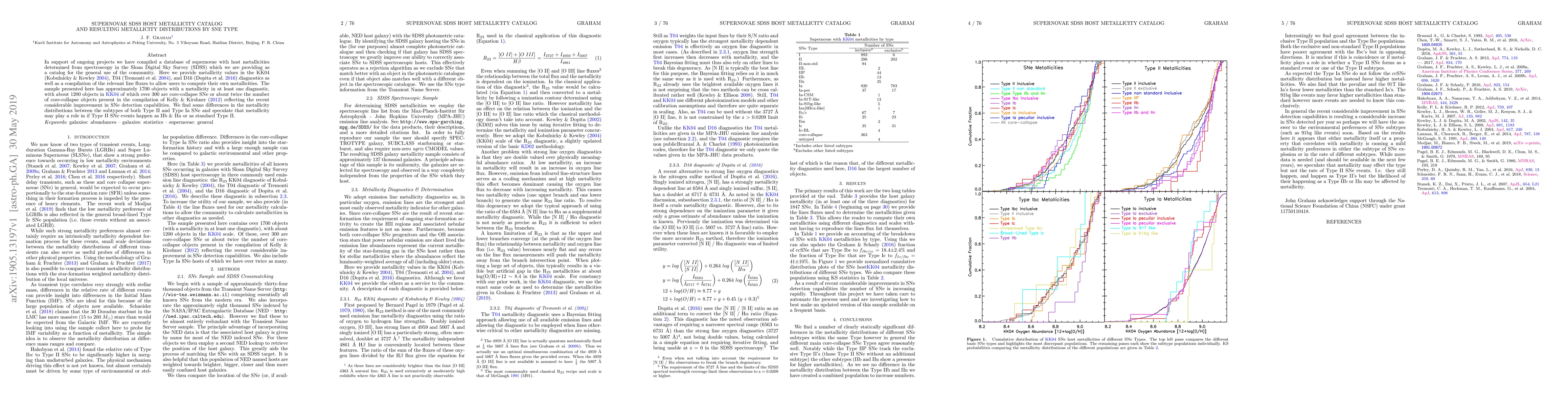 In support of ongoing projects we have compiled a database of supernovae with host metallicities determined from spectroscopy in the Sloan Digital Sky Survey (SDSS) which we are providing as a catalog for the general use of the community. Here we provide metallicity values in the KK04 (Kobulnicky & Kewley 2004), T04 (Tremonti et al. 2004), and D16 (Dopita et al. 2016) diagnostics as well as a compilation of the relevant line fluxes to allow users to compute their own metallicities. The sample presented here has approximately 1700 objects with a metallicity in at least one diagnostic, with about 1200 objects in KK04 of which over 300 are core-collapse SNe or about twice the number of core-collapse objects present in the compilation of Kelly & Kirshner (2012) reflecting the recent considerable improvement in SNe detection capabilities. We find some differences in the metallicity distributions between the subtypes of both Type II and Type Ia SNe and speculate that metallicity may play a role in if Type II SNe events happen as IIb & IIn or as standard Type II.