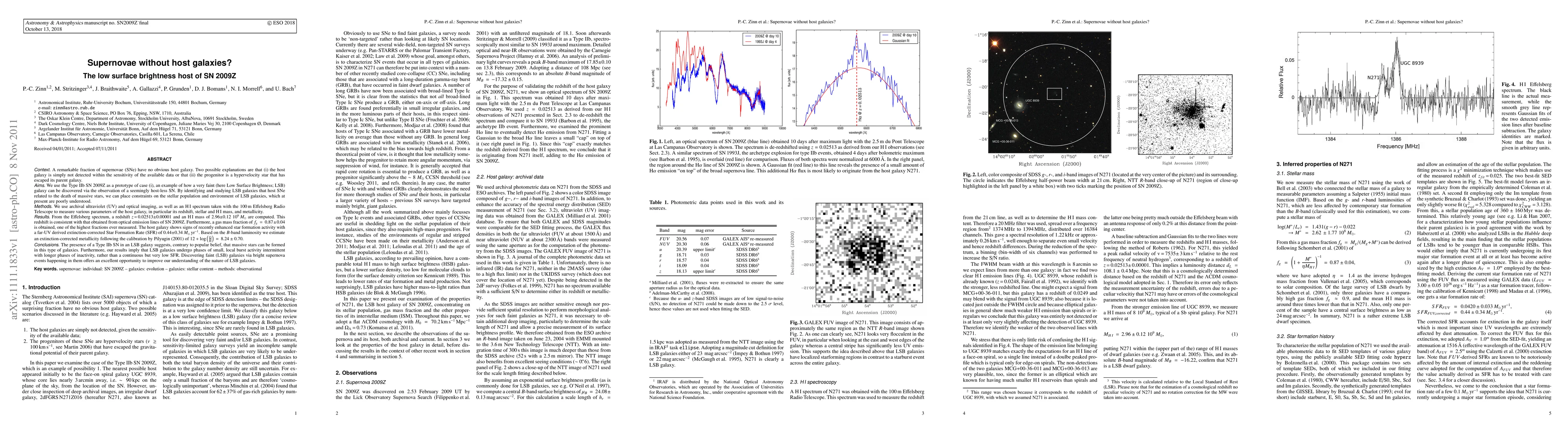 A remarkable fraction of supernovae (SNe) have no obvious host galaxy. Two possible explanations are that (i) the host galaxy is simply not detected within the sensitivity of the available data or that (ii) the progenitor is a hypervelocity star that has escaped its parent galaxy. We use the Type IIb SN 2009Z as a prototype of case (i), an example of how a very faint (here Low Surface Brightness; LSB) galaxy can be discovered via the observation of a seemingly host-less SN. By identifying and studying LSB galaxies that host SNe related to the death of massive stars, we can place constraints on the stellar population and environment of LSB galaxies, which at present are poorly understood. From an HI spectrum, a redshift of z = 0.02513+-0.00001 and an HI mass of (2.96+-0.12) 10^9 M_sun are computed. This redshift is consistent with that obtained from optical emission lines of SN 2009Z. Furthermore, a gas mass fraction of f_g = 0.87+-0.04 is obtained, one of the highest fractions ever measured. The host galaxy shows signs of recently enhanced star formation activity with a far-UV derived extinction-corrected Star Formation Rate (SFR) of 0.44+-0.34 M_sun/yr. Based on the B-band luminosity we estimate an extinction-corrected metallicity following the calibration by Pilyugin (2001) of 12 + log(O/H) = 8.24+-0.70. The presence of a Type IIb SN in an LSB galaxy suggests, contrary to popular belief, that massive stars can be formed in this type of galaxies. Furthermore, our results imply that LSB galaxies undergo phases of small, local burst activity intermittent with longer phases of inactivity.