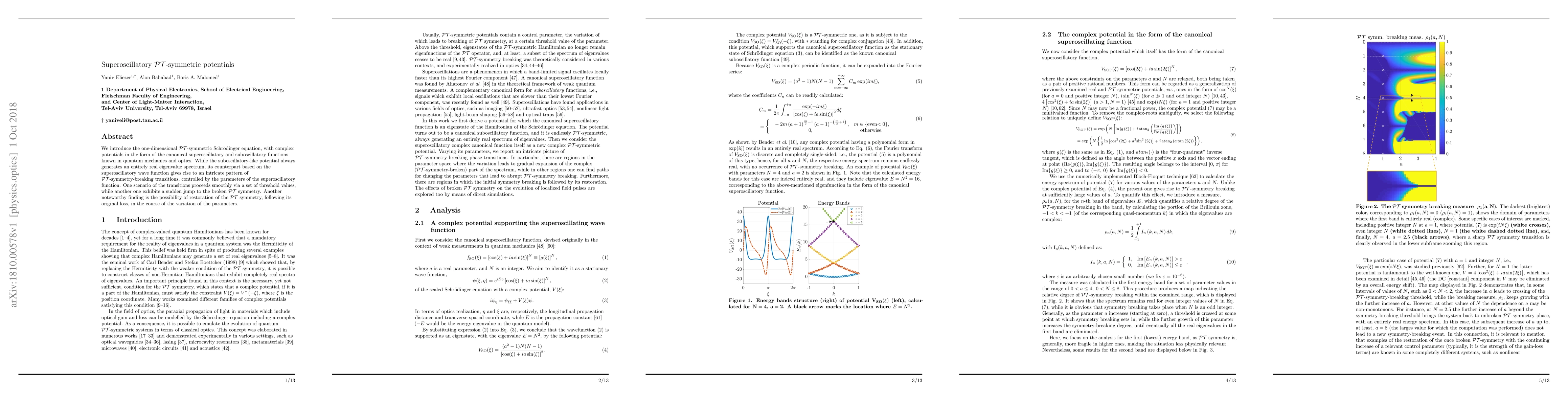 We introduce the one-dimensional PT-symmetric Schrodinger equation, with complex potentials in the form of the canonical superoscillatory and suboscillatory functions known in quantum mechanics and optics. While the suboscillatory-like potential always generates an entirely real eigenvalue spectrum, its counterpart based on the superoscillatory wave function gives rise to an intricate pattern of PT-symmetry-breaking transitions, controlled by the parameters of the superoscillatory function. One scenario of the transitions proceeds smoothly via a set of threshold values, while another one exhibits a sudden jump to the broken PT symmetry. Another noteworthy finding is the possibility of restoration of the PT symmetry, following its original loss, in the course of the variation of the parameters.