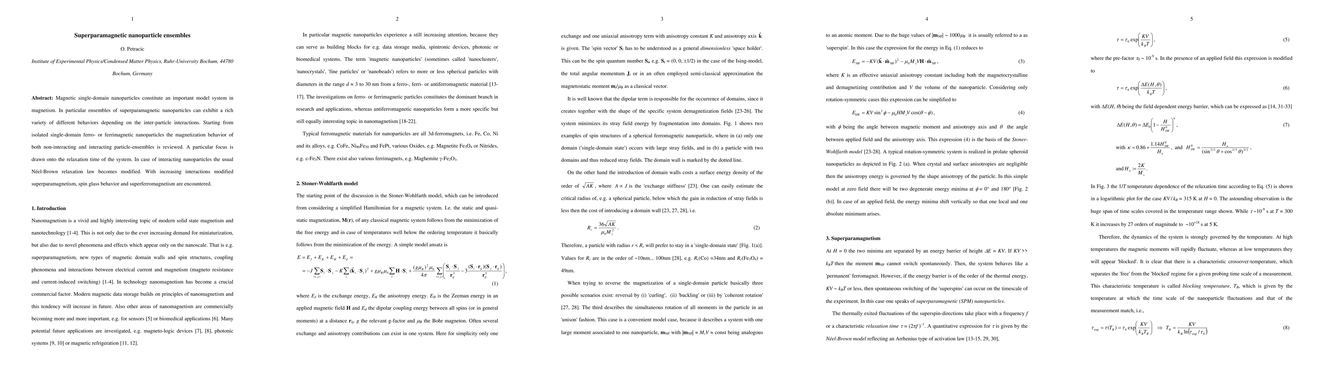 Magnetic single-domain nanoparticles constitute an important model system in magnetism. In particular ensembles of superparamagnetic nanoparticles can exhibit a rich variety of different behaviors depending on the inter-particle interactions. Starting from isolated single-domain ferro- or ferrimagnetic nanoparticles the magnetization behavior of both non-interacting and interacting particle-ensembles is reviewed. A particular focus is drawn onto the relaxation time of the system. In case of interacting nanoparticles the usual Neel-Brown relaxation law becomes modified. With increasing interactions modified superparamagnetism, spin glass behavior and superferromagnetism is encountered.