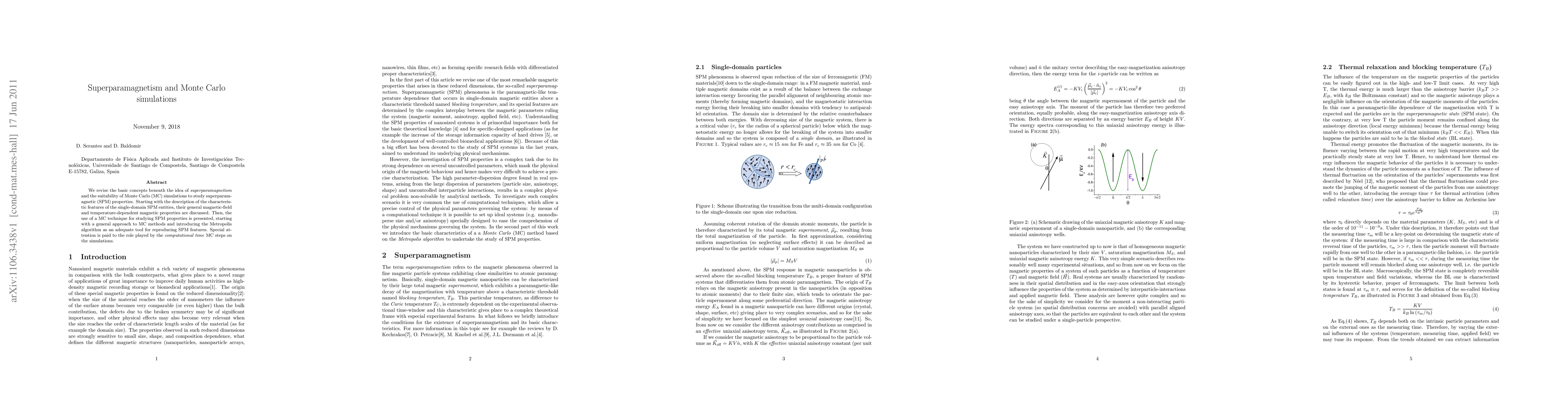Researchers revised superparamagnetism concepts and used Monte Carlo simulations to study its properties, demonstrating the Metropolis algorithm's ability to reproduce key features of single-domain entities.