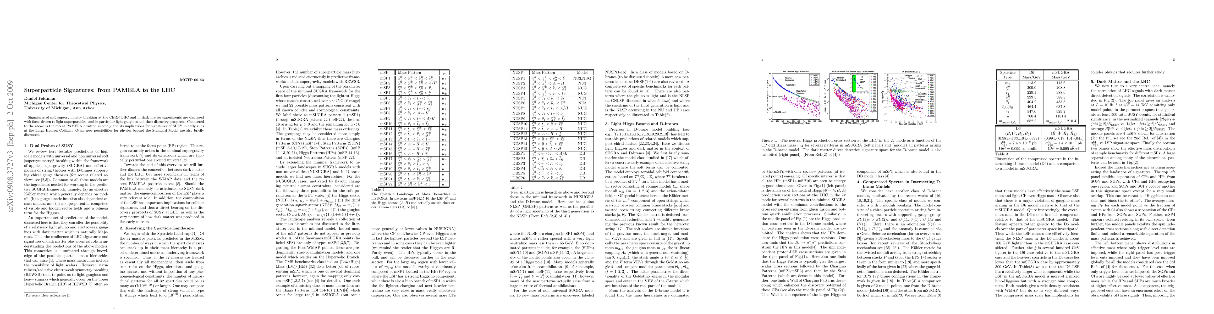 Signatures of soft supersymmetry breaking at the CERN LHC and in dark matter experiments are discussed with focus drawn to light superparticles, and in particular light gauginos and their discovery prospects. Connected to the above is the recent PAMELA positron anomaly and its implications for signatures of SUSY in early runs at the Large Hadron Collider. Other new possibilities for physics beyond the Standard Model are also briefly discussed.