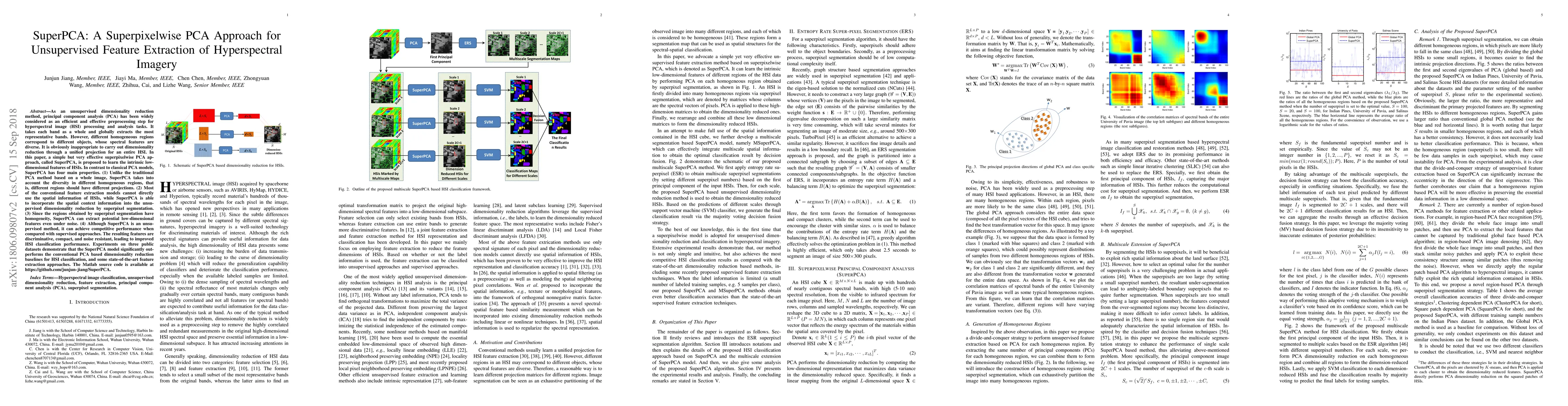 The paper introduces SuperPCA, a superpixelwise PCA approach that incorporates spatial context for unsupervised feature extraction in hyperspectral imagery, outperforming traditional global PCA methods.