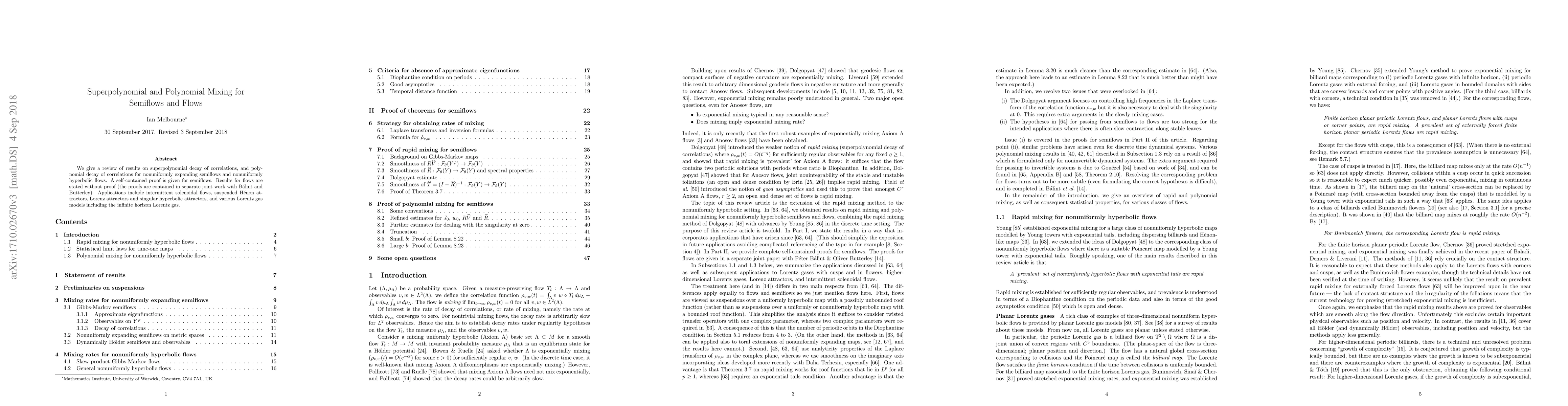 This paper reviews results on the superpolynomial and polynomial decay of correlations for nonuniformly expanding semiflows and flows, providing a self-contained proof for semiflows and referencing separate work for flows. Applications cover intermittent solenoidal flows, suspended Hénón attractors, Lorenz attractors, and various Lorentz gas models.