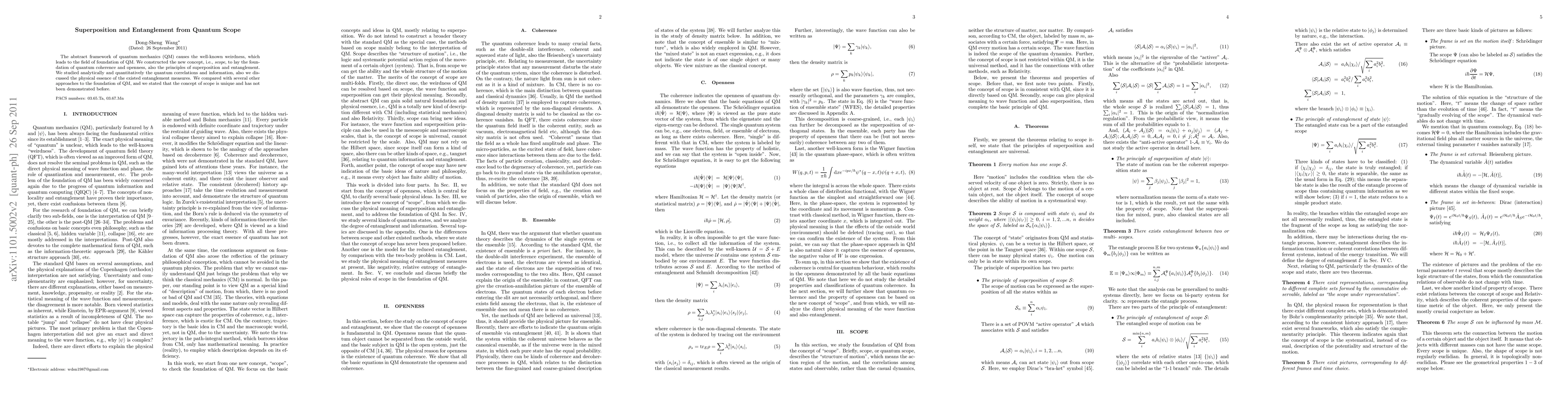 This paper introduces a novel concept called "scope" to underpin quantum coherence, superposition, and entanglement. It provides an analytical and quantitative study of quantum correlations and information, asserting that the scope concept is unique and offers a new foundation for quantum mechanics.