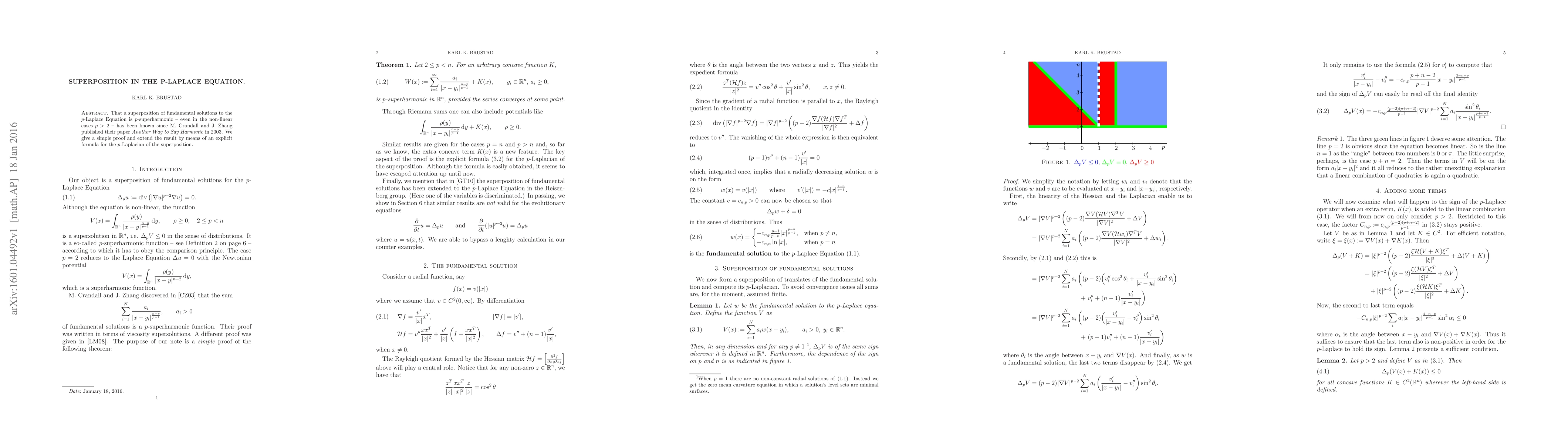 That a superposition of fundamental solutions to the $p$-Laplace Equation is $p$-superharmonic -- even in the non-linear cases $p>2$ -- has been known since M. Crandall and J. Zhang published their paper "Another Way to Say Harmonic" in 2003. We give a simple proof and extend the result by means of an explicit formula for the $p$-Laplacian of the superposition.