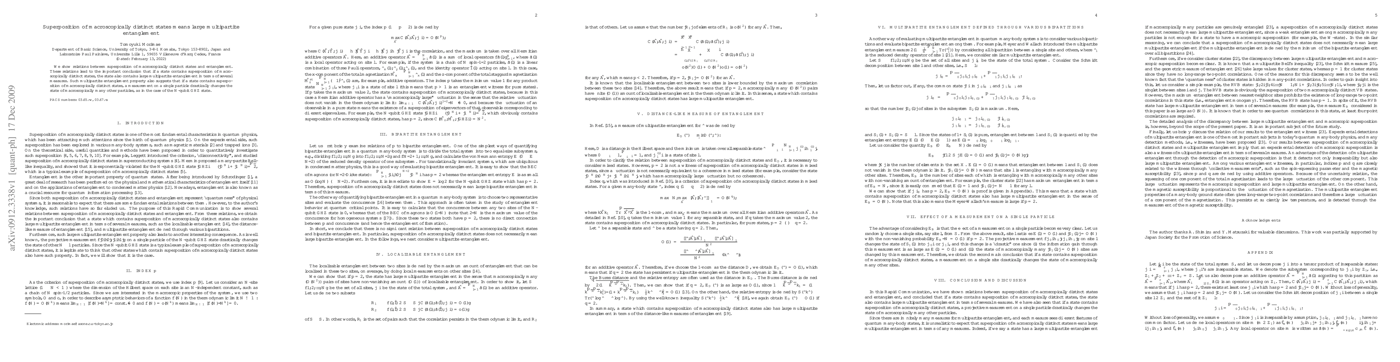 This paper demonstrates that superposition of macroscopically distinct states inherently leads to large multipartite entanglement, as evidenced by several measures. Consequently, a measurement on a single particle can significantly alter the state of many other particles, akin to the N-qubit GHZ state.