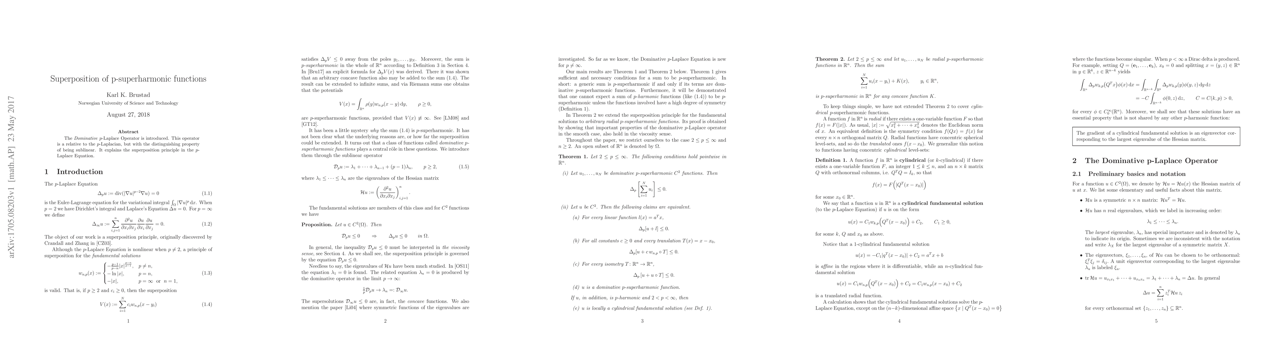 Summary: The paper introduces the Dominative $p$-Laplace Operator, a sublinear variant of the $p$-Laplacian, and demonstrates its role in explaining the superposition principle within the $p$-Laplace Equation.