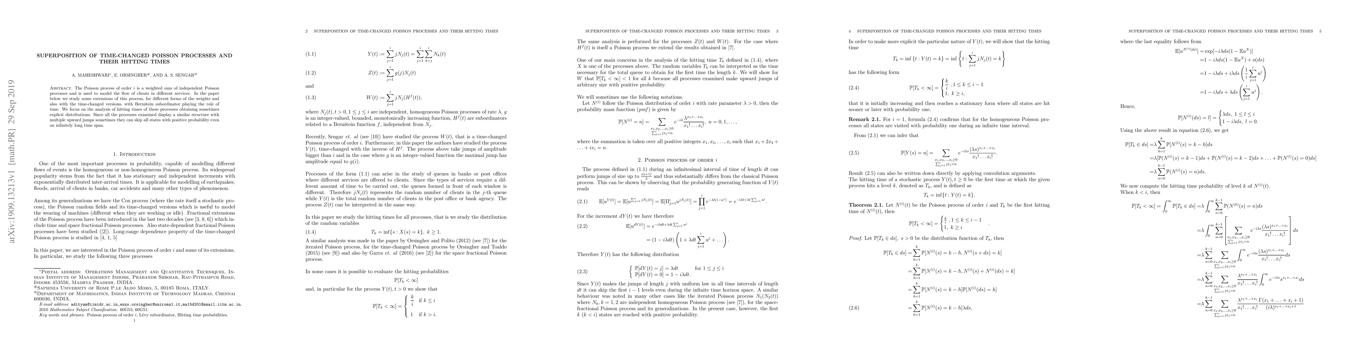 The Poisson process of order $i$ is a weighted sum of independent Poisson processes and is used to model the flow of clients in different services. In the paper below we study some extensions of this process, for different forms of the weights and also with the time-changed versions, with Bern\v stein subordinator playing the role of time. We focus on the analysis of hitting times of these processes obtaining sometimes explicit distributions. Since all the processes examined display a similar structure with multiple upward jumps sometimes they can skip all states with positive probability even on infinitely long time span.