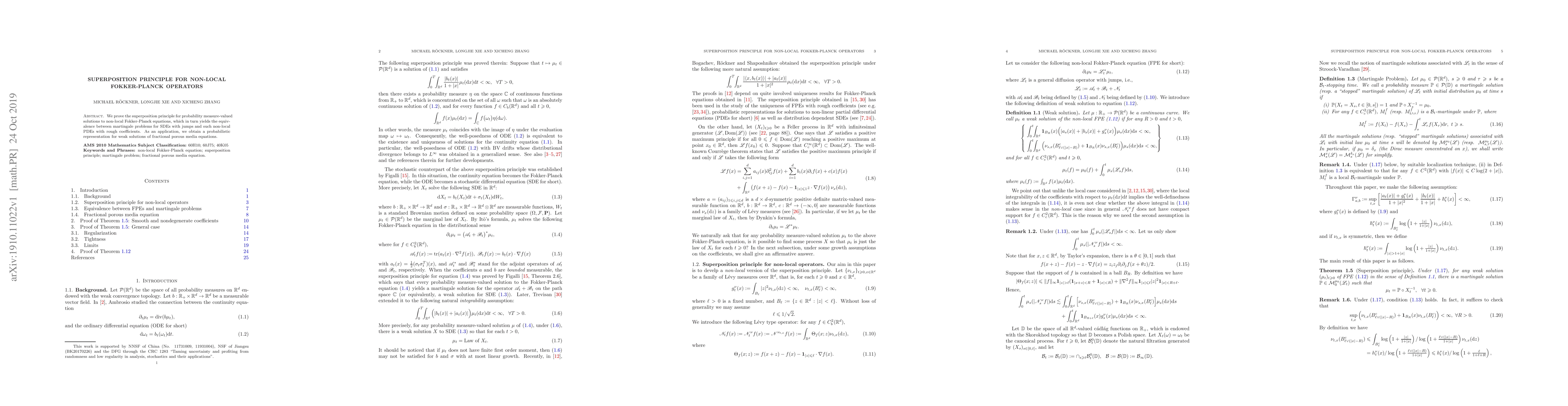 The paper proves the superposition principle for non-local Fokker-Planck operators, establishing equivalence between martingale problems for jump SDEs and non-local PDEs. It also provides a probabilistic representation for weak solutions of fractional porous media equations.
