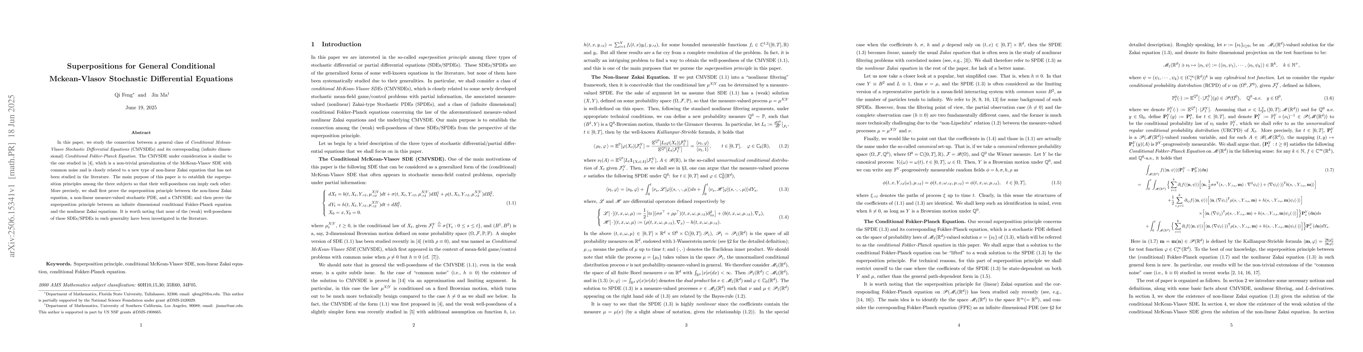 In this paper, we study the connection between a general class of Conditional Mckean-Vlasov Stochastic Differential Equations (CMVSDEs) and its corresponding (infinite dimensional) Conditional Fokker-Planck Equation. The CMVSDE under consideration is similar to the one studied in [4], which is a non-trivial generalization of the McKean-Vlasov SDE with common noise and is closely related to a new type of non-linear Zakai equation that has not been studied in the literature. The main purpose of this paper is to establish the superposition principles among the three subjects so that their well-posedness can imply each other. More precisely, we shall first prove the superposition principle between the non-linear Zakai equation, a non-linear measure-valued stochastic PDE, and a CMVSDE; and then prove the superposition principle between an infinite dimensional conditional Fokker-Planck equation and the nonlinear Zakai equations. It is worth noting that none of the (weak) well-posedness of these SDEs/SPDEs in such generality have been investigated in the literature.