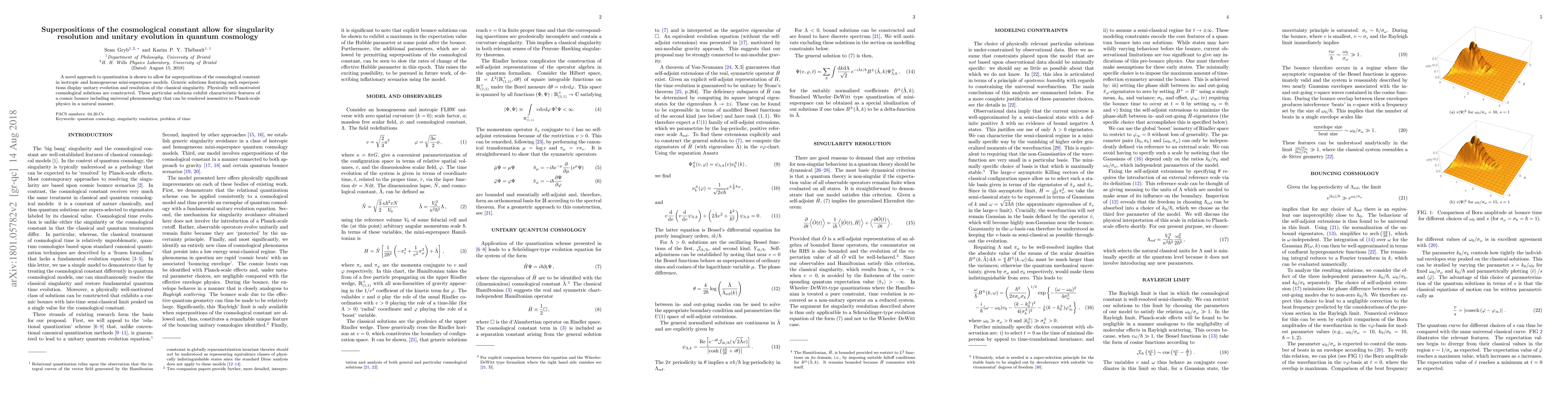 This paper proposes a new quantization method that enables superpositions of the cosmological constant, leading to unitary evolution and resolution of classical singularities in quantum cosmology. The resulting solutions exhibit cosmic bounce features and universal phenomenology, largely independent of Planck-scale physics.