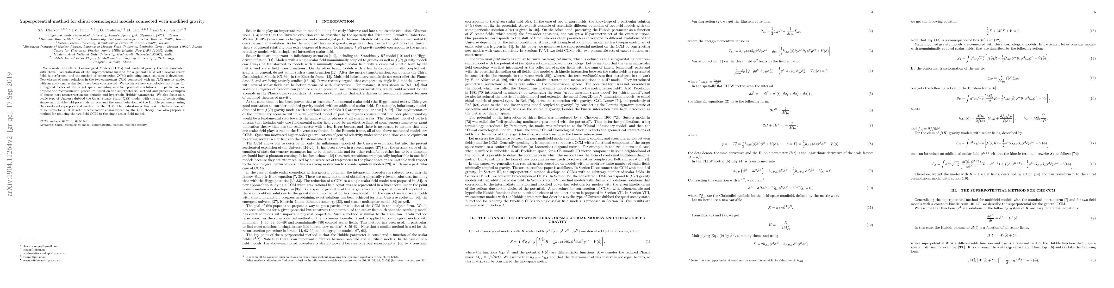 We consider the Chiral Cosmological Models (CCMs) and modified gravity theories associated with them. Generalization of the superpotential method for a general CCM with several scalar fields is performed, and the method of construction CCMs admitting exact solutions is developed. New classes of exact solutions in the two-component CCM connected with an $f(R)$ gravity model with an additional scalar field have been constructed. We construct new cosmological solutions for a diagonal metric of the target space, including modified power-law solutions. In particular, we propose the reconstruction procedure based on the superpotential method and present examples of kinetic part reconstruction for periodic and hyperbolic Hubble parameters. We also focus on a cyclic type of Universe dubbed the Quasi-Steady State (QSS) model, with the aim of constructing single- and double-field potentials for one and the same behaviour of the Hubble parameter using the developed superpotential method for the CCM. The realization of this task includes a new set of solutions for a CCM with a scale factor characterized by the QSS theory. We also propose a method for reducing the two-field CCM to the single scalar field model.