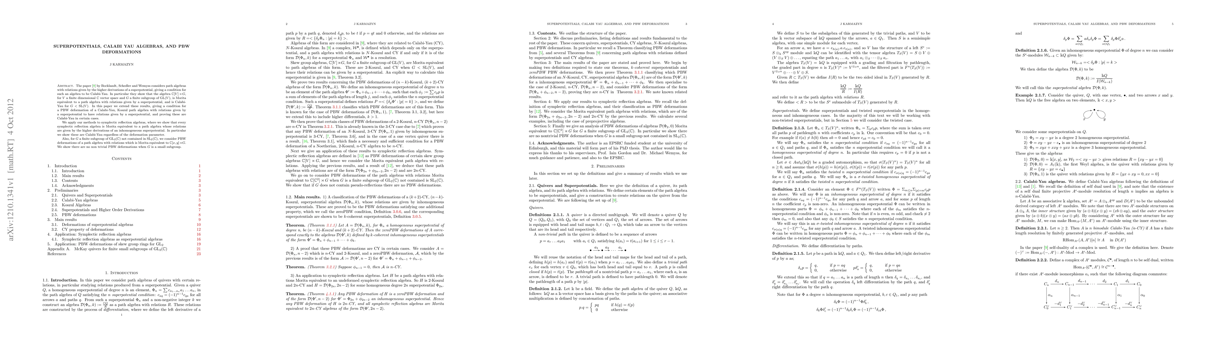 The paper introduces and proves conditions for PBW deformations of Calabi-Yau, Koszul path algebras with superpotential relations, extending previous work and applying the results to symplectic reflection algebras.