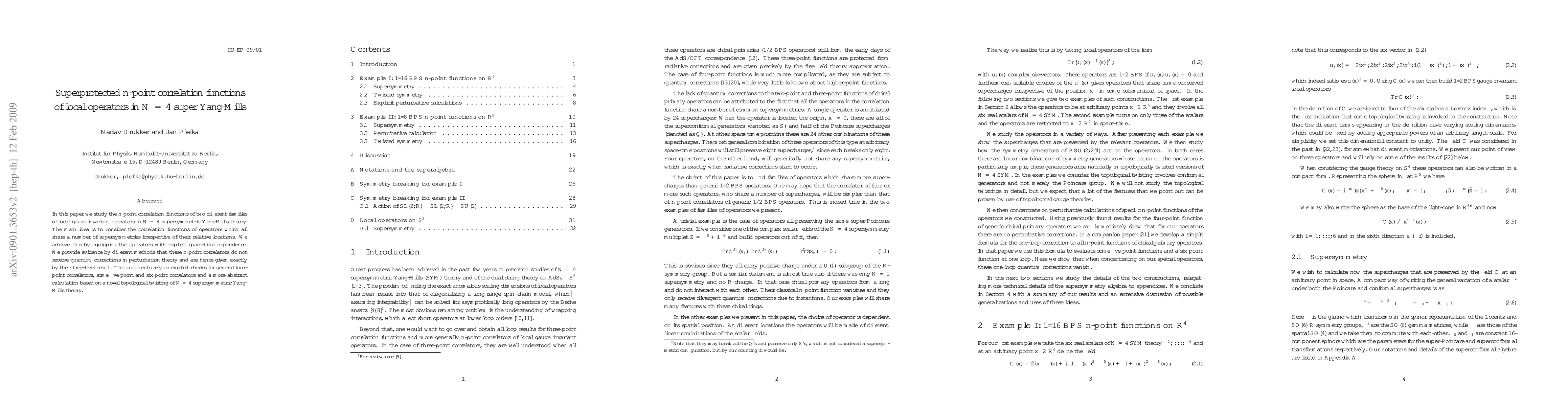 This paper investigates n-point correlation functions of specific local gauge-invariant operators in N=4 supersymmetric Yang-Mills theory, showing that these functions retain their tree-level values without quantum corrections through various methods including explicit calculations and a novel topological twisting approach.
