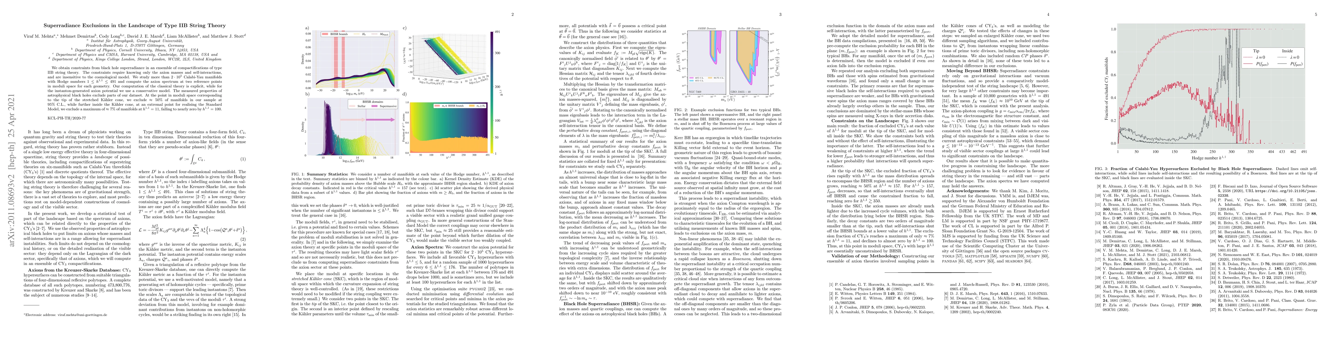 We obtain constraints from black hole superradiance in an ensemble of compactifications of type IIB string theory. The constraints require knowing only the axion masses and self-interactions, and are insensitive to the cosmological model. We study more than $2 \cdot 10^5$ Calabi-Yau manifolds with Hodge numbers $1\leq h^{1,1}\leq 491$ and compute the axion spectrum at two reference points in moduli space for each geometry. Our computation of the classical theory is explicit, while for the instanton-generated axion potential we use a conservative model. The measured properties of astrophysical black holes exclude parts of our dataset. At the point in moduli space corresponding to the tip of the stretched K\"{a}hler cone, we exclude $\approx 50\%$ of manifolds in our sample at 95% C.L., while further inside the K\"{a}hler cone, at an extremal point for realising the Standard Model, we exclude a maximum of $\approx 7\%$ of manifolds at $h^{1,1}=11$, falling to nearly zero by $h^{1,1}=100$.