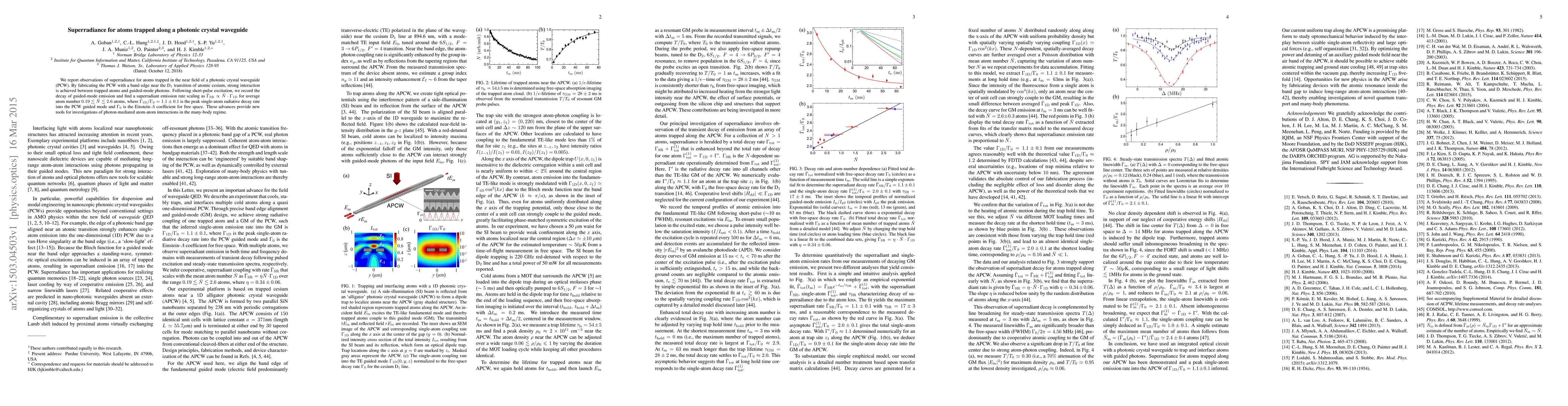 This paper reports the observation of superradiance in atoms trapped near a photonic crystal waveguide, demonstrating a superradiant emission rate scaling with the number of atoms. The findings provide new insights into photon-mediated interactions in many-body systems.