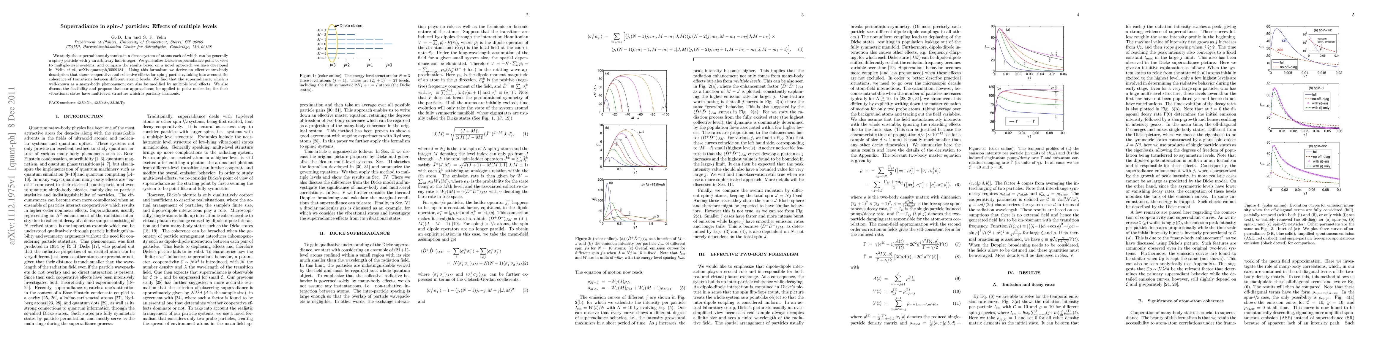This paper generalizes Dicke's superradiance theory to spin-$j$ particles in a dense system, revealing cooperative and collective effects through a novel effective two-body description that considers transitions between multiple atomic levels. The study suggests that superradiance can be significantly modified by these multi-level interactions and proposes its applicability to polar molecules with multi-level vibrational states.