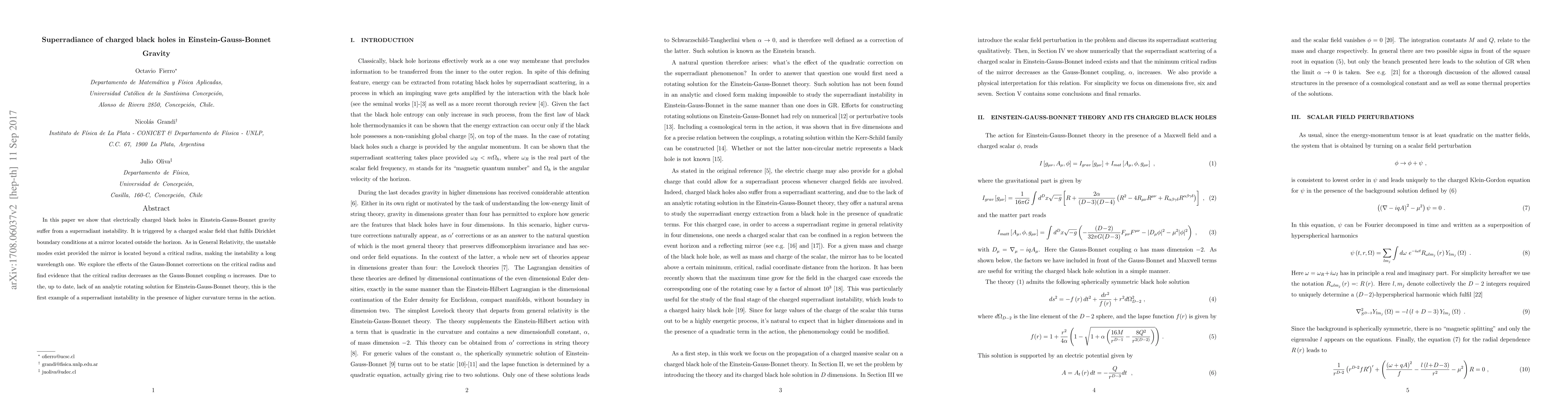 This paper demonstrates that electrically charged black holes in Einstein-Gauss-Bonnet gravity experience a superradiant instability caused by a charged scalar field. The instability is shown to depend on the Gauss-Bonnet coupling, with the critical radius for the instability decreasing as this coupling increases.