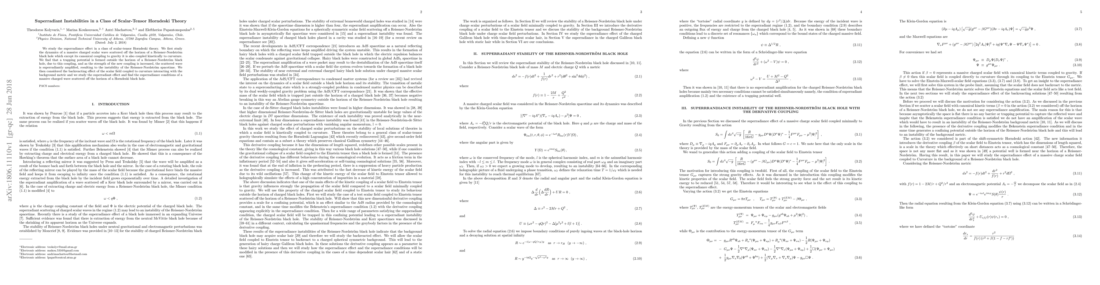 This paper investigates superradiant instabilities in scalar-tensor Horndeski theory, demonstrating that a kinetic coupling to curvature can create a trapping potential around Reissner-Nordström black holes, leading to superradiant amplification of massive charged scalar waves and resulting spacetime instability. The study further explores the backreacting effects of such scalar fields on the Horndeski black hole metric.