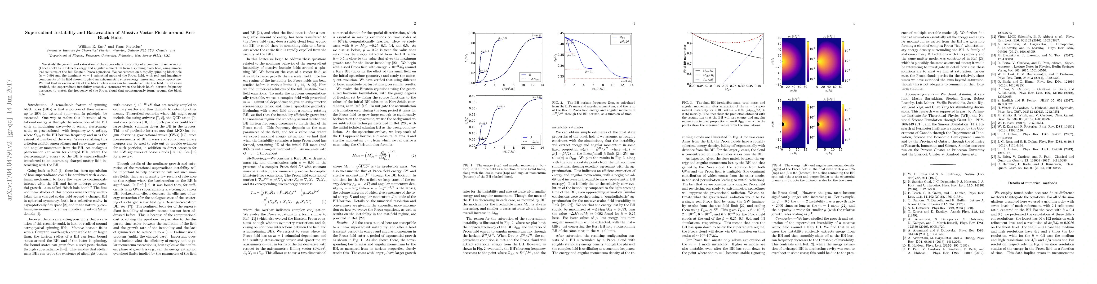 This paper investigates the superradiant instability of a massive vector field around a rapidly spinning Kerr black hole, revealing that over 9% of the black hole's mass can be transferred to the field. The instability saturates when the black hole's horizon frequency matches the Proca field's frequency, forming a stable cloud around the black hole.