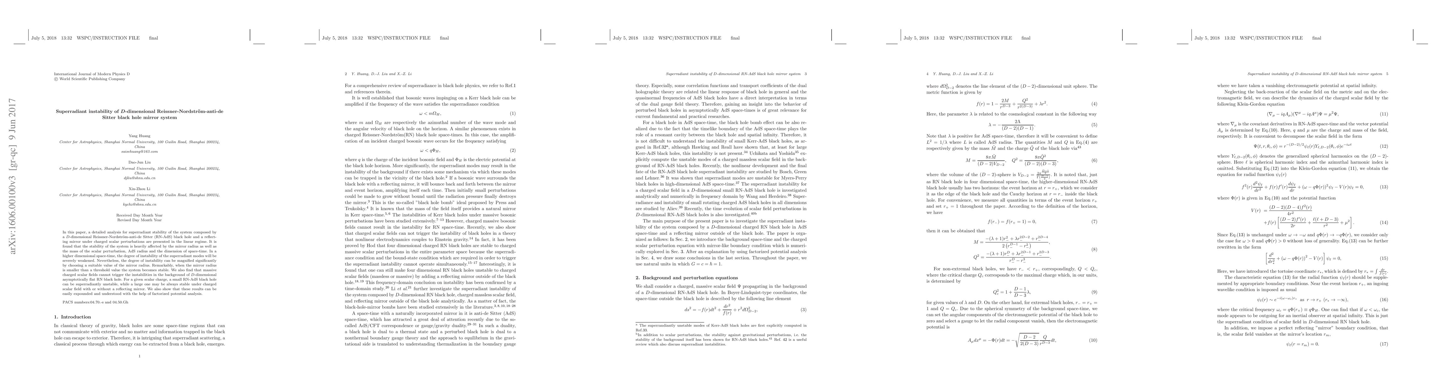 This paper investigates the superradiant instability of a $D$-dimensional Reissner-Nordström-anti-de Sitter black hole with a reflecting mirror under charged scalar perturbations. The analysis reveals that the system's stability is significantly influenced by the mirror radius, scalar perturbation mass, AdS radius, and spacetime dimension, with higher dimensions reducing instability.