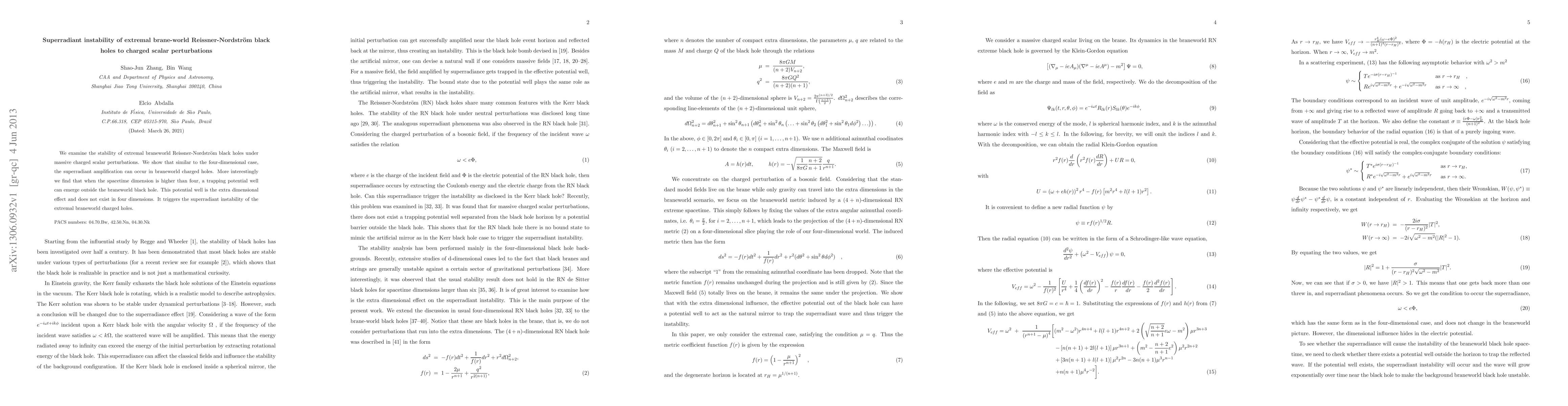 Summary: The study investigates the stability of extremal braneworld Reissner-Nordström black holes under charged scalar perturbations, finding that superradiant amplification can occur, similar to four-dimensional cases. Notably, in higher dimensions, a trapping potential well emerges outside the black hole, triggering superradiant instability, an effect absent in four dimensions.