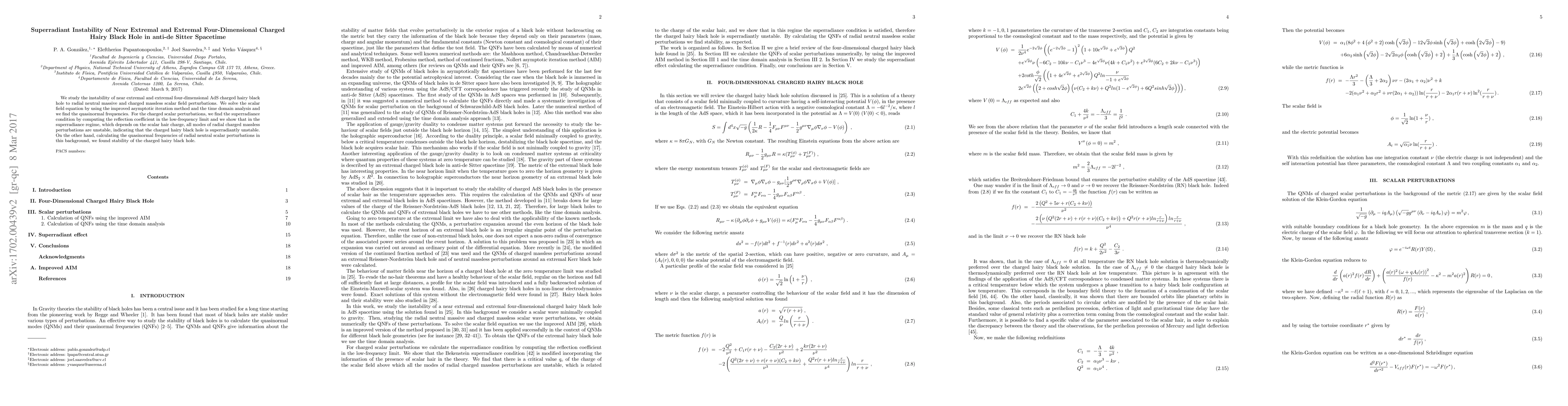 This paper investigates the superradiant instability of near extremal and extremal four-dimensional charged hairy black holes in AdS spacetime. It finds that radial charged massless perturbations exhibit superradiant instability, while radial neutral scalar perturbations remain stable.