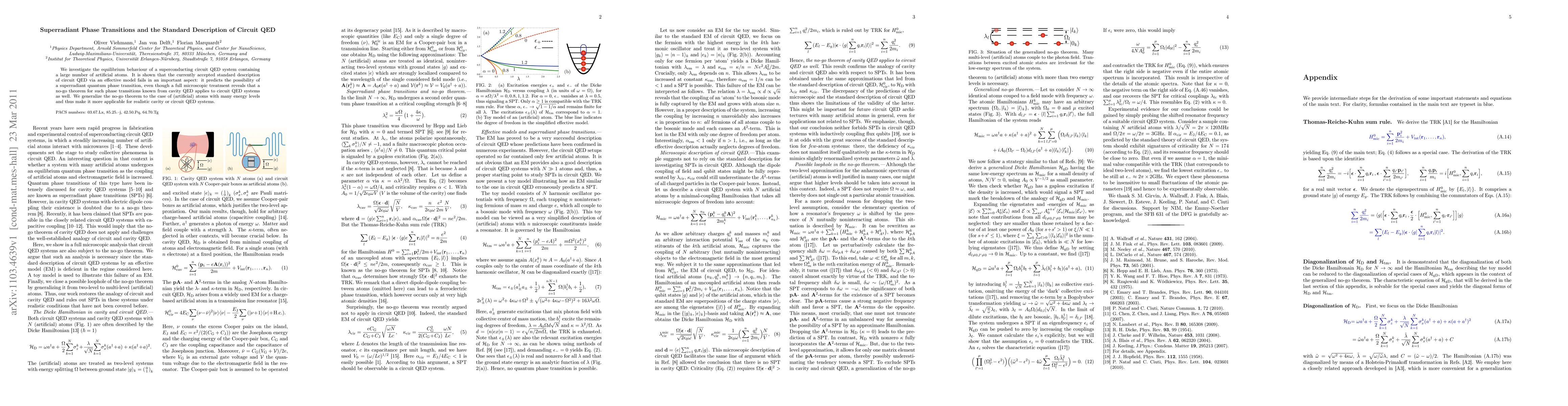 This paper examines the equilibrium behavior of a superconducting circuit QED system, revealing that the standard effective model incorrectly predicts a superradiant quantum phase transition. The authors generalize the no-go theorem for such transitions to circuit QED systems, aligning theoretical predictions with microscopic treatments.