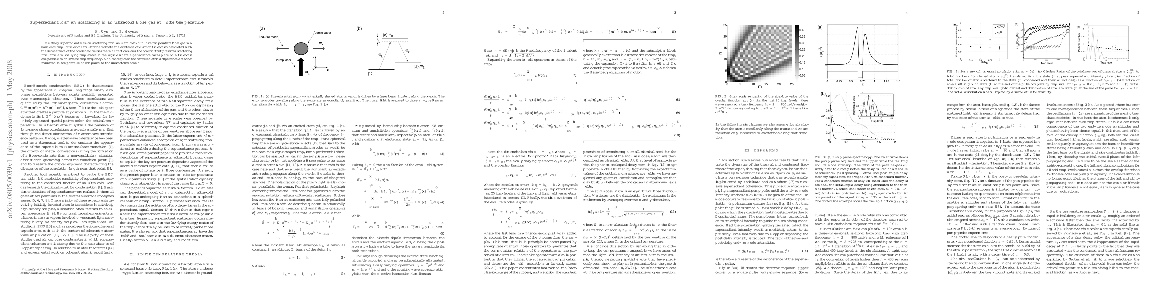This paper investigates superradiant Raman scattering in a finite temperature ultracold Bose gas, revealing distinct timescales for decoherence between condensed and thermal atoms. The study finds that scattering favors atoms in low trap states, resulting in scattered atoms having a slightly lower temperature than unscattered atoms.