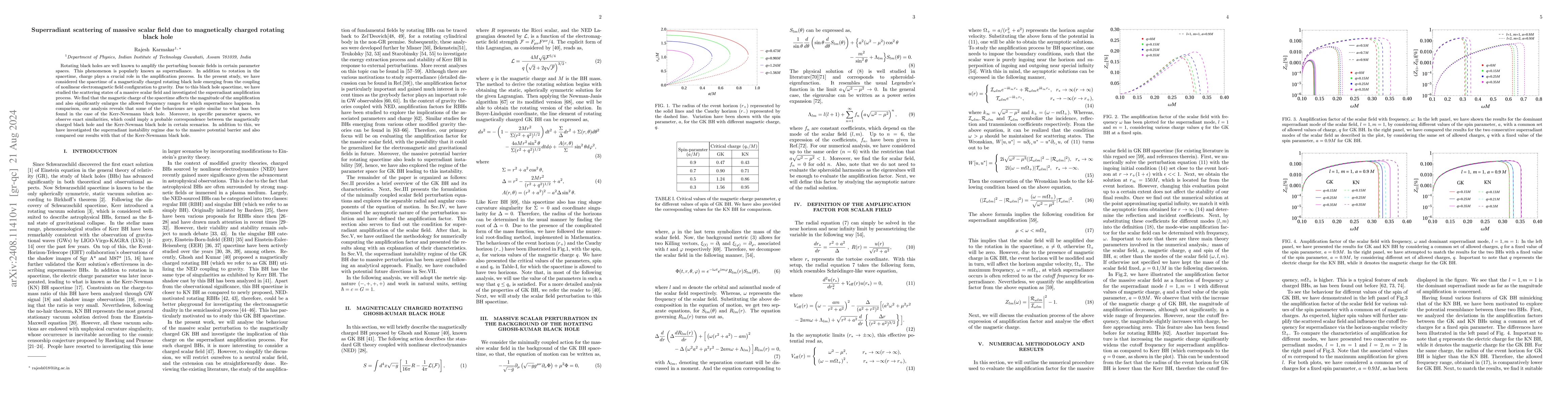 This research investigates superradiant scattering of a massive scalar field around a magnetically charged rotating black hole, revealing that the magnetic charge enhances amplification and expands the frequency range for superradiance. Similarities to the Kerr-Newman black hole suggest a possible correspondence in specific scenarios.