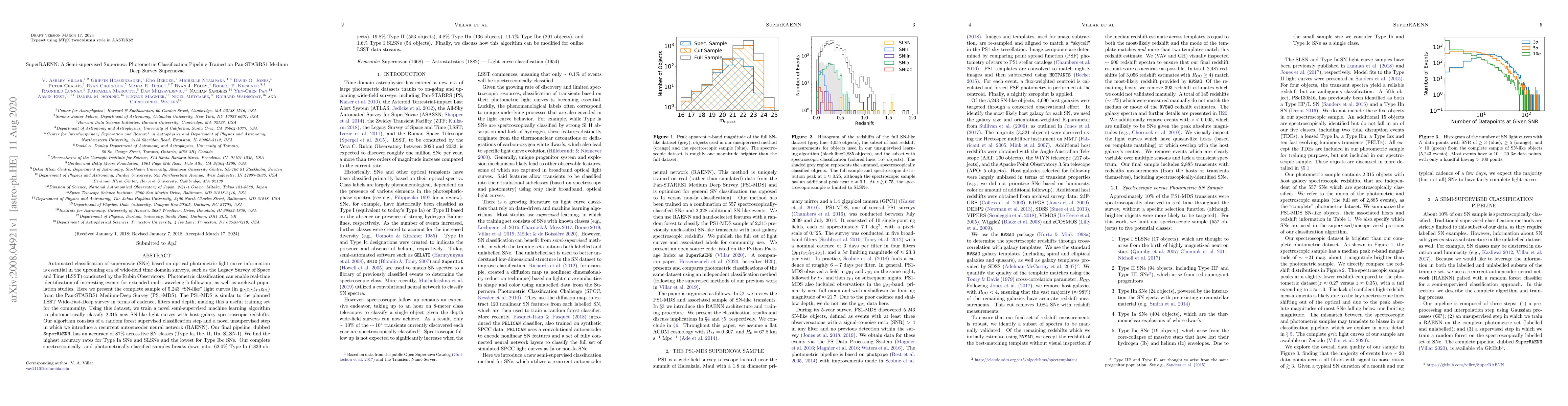 The paper introduces SuperRAENN, a semi-supervised machine learning pipeline for classifying supernovae using photometric light curve data from the Pan-STARRS1 Medium Deep Survey. The algorithm achieves 87% accuracy across five supernova types, with the highest accuracy for Type Ia and SLSNe, and demonstrates its potential for real-time classification in future surveys like LSST.