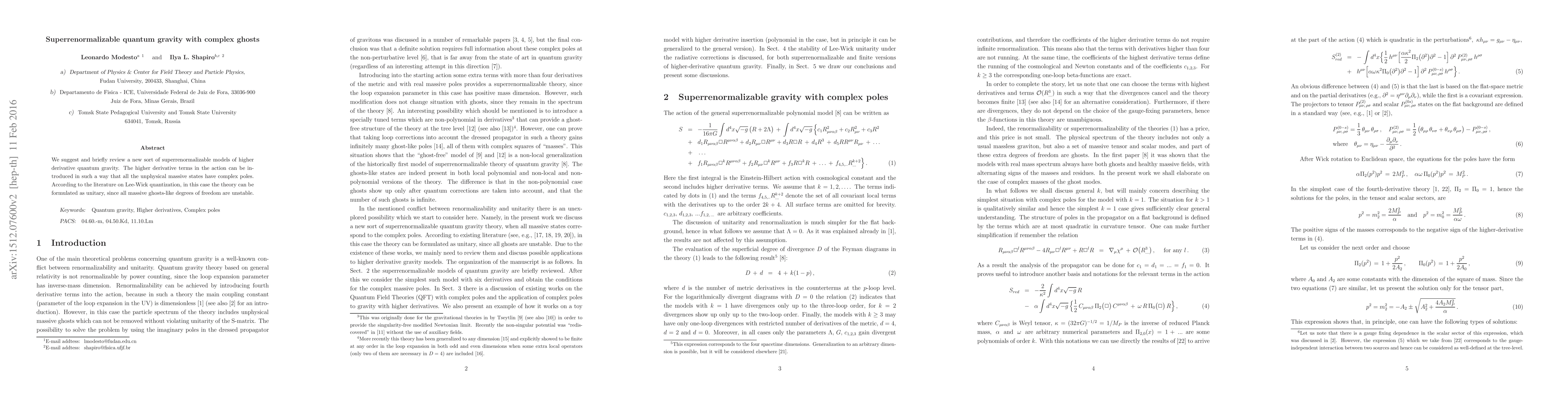 Researchers propose a new superrenormalizable model of quantum gravity with complex ghosts that eliminate unstable massive states, making the theory unitary.